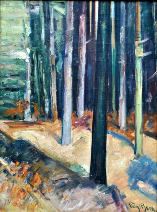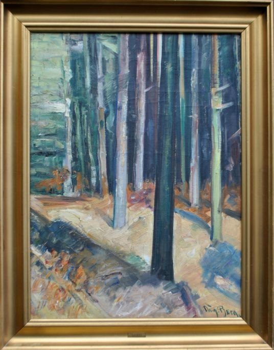Berg, August Munthe (1858 - 1946) Norge: Skov. Olie på lærred. Signeret. H: 68 cm. B: 52 cm.Indrammet: H: 81 cm. B: 64 cm.