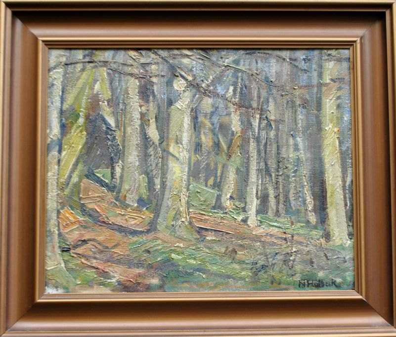Holbak, Niels (1884 - 1954) Danmark: En skov. Olie på lærred. Signeret. H: 33 cm. B: 41 cm.Indrammet: H: 43 cm. B: 51 cm.