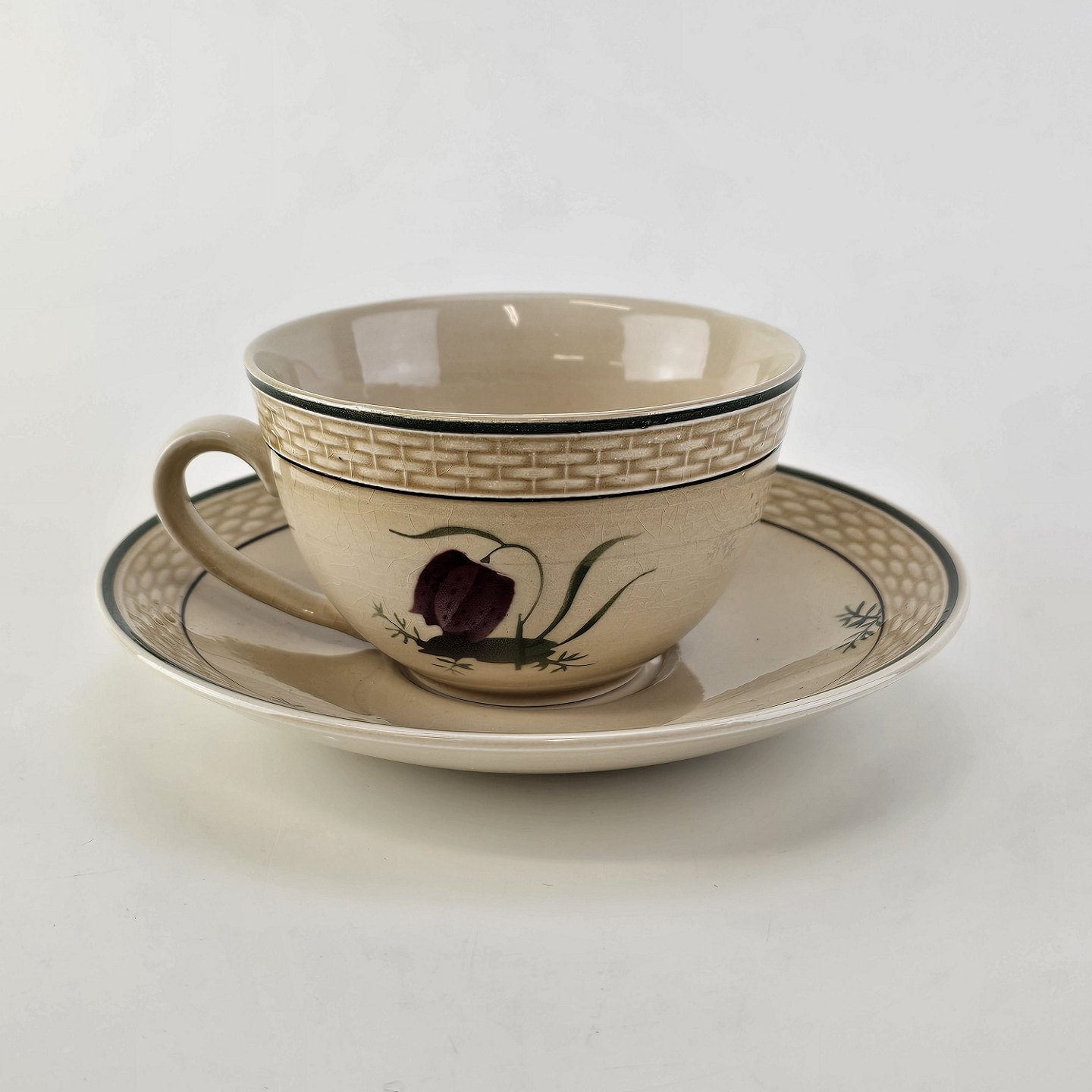 Tekop med underkop i fajance fra stellet VibeægNr. 1782