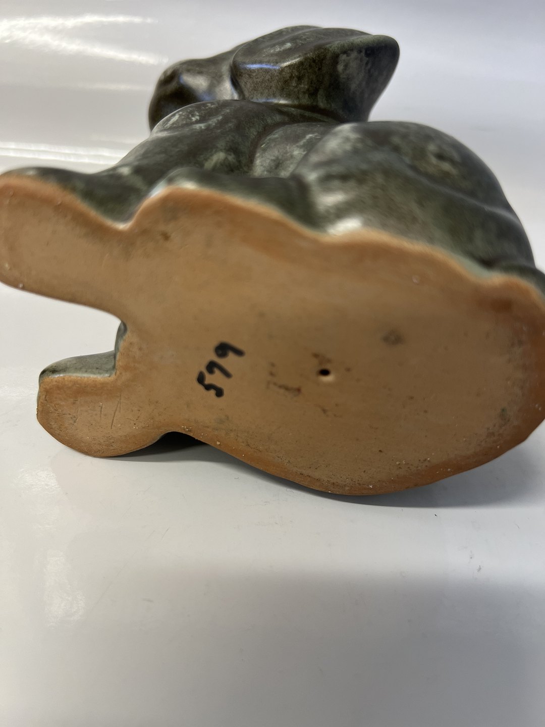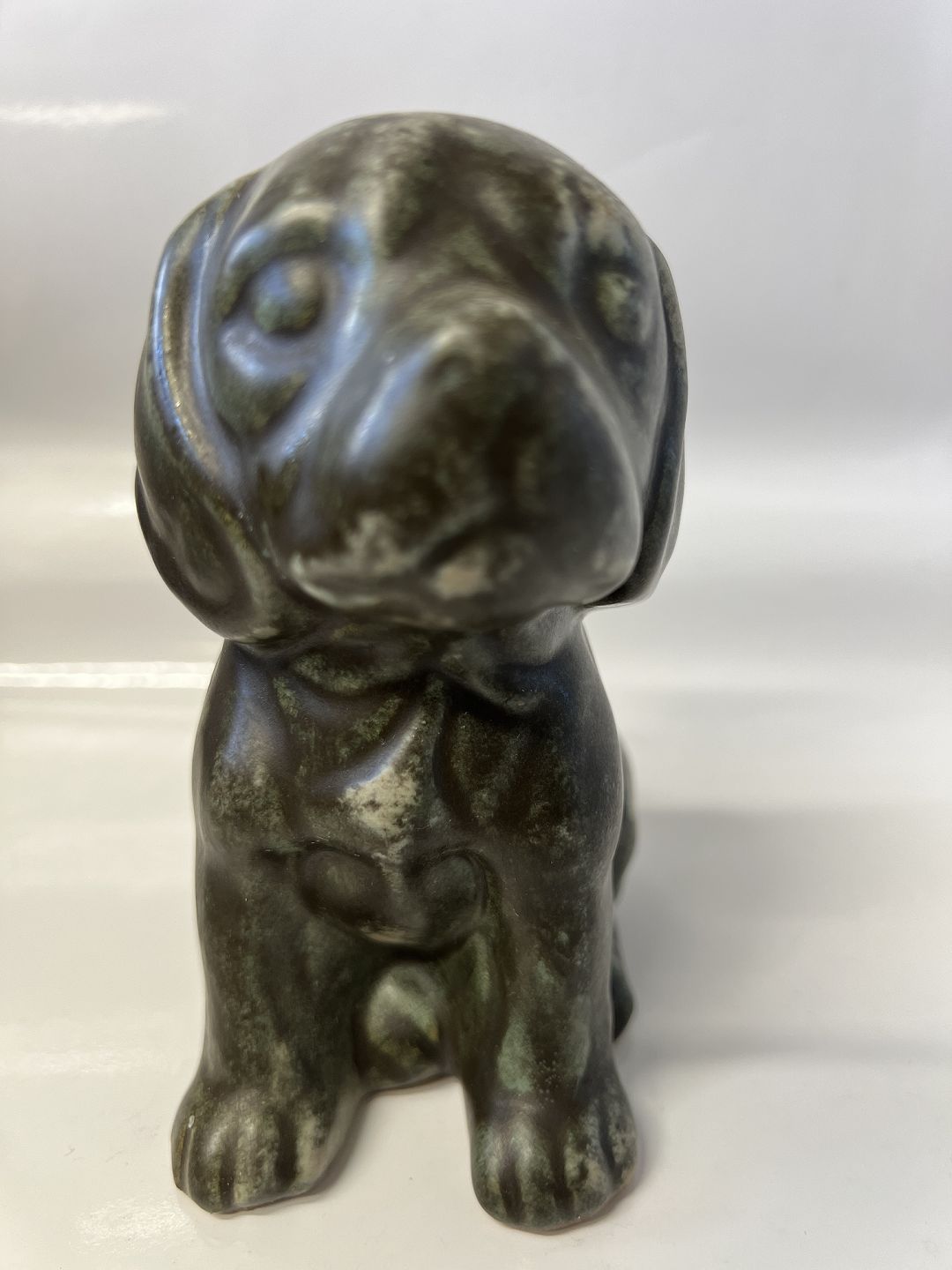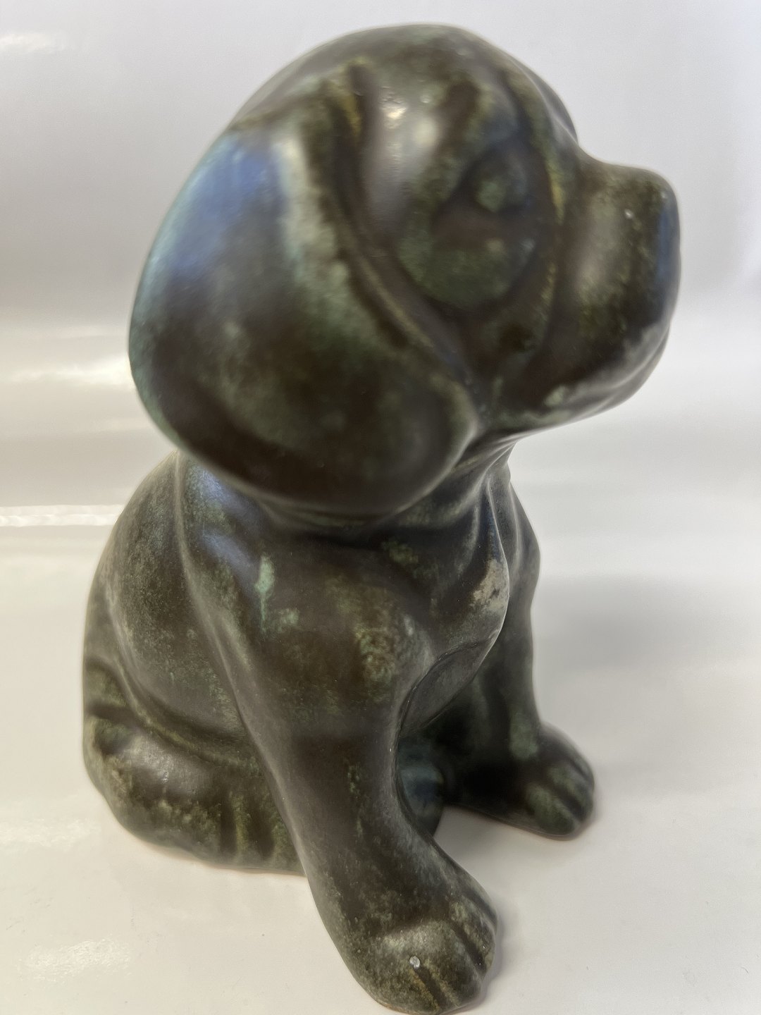Johgus, Figur hund, Bornholmsk keramik.Højde 12,5 cm.
