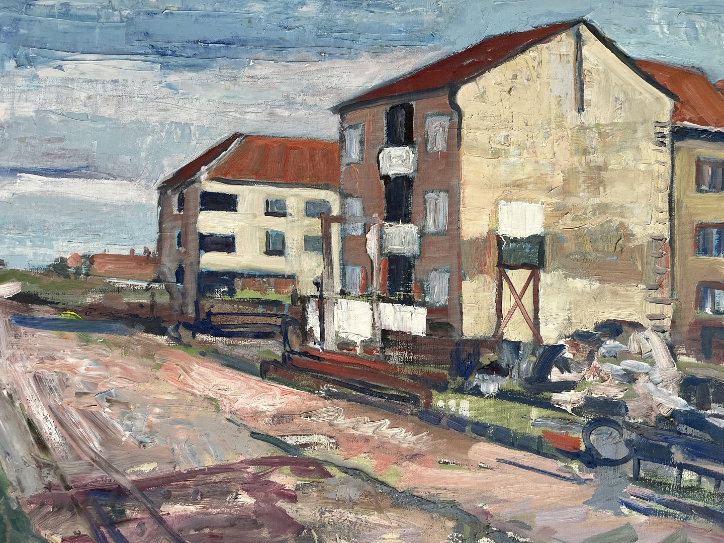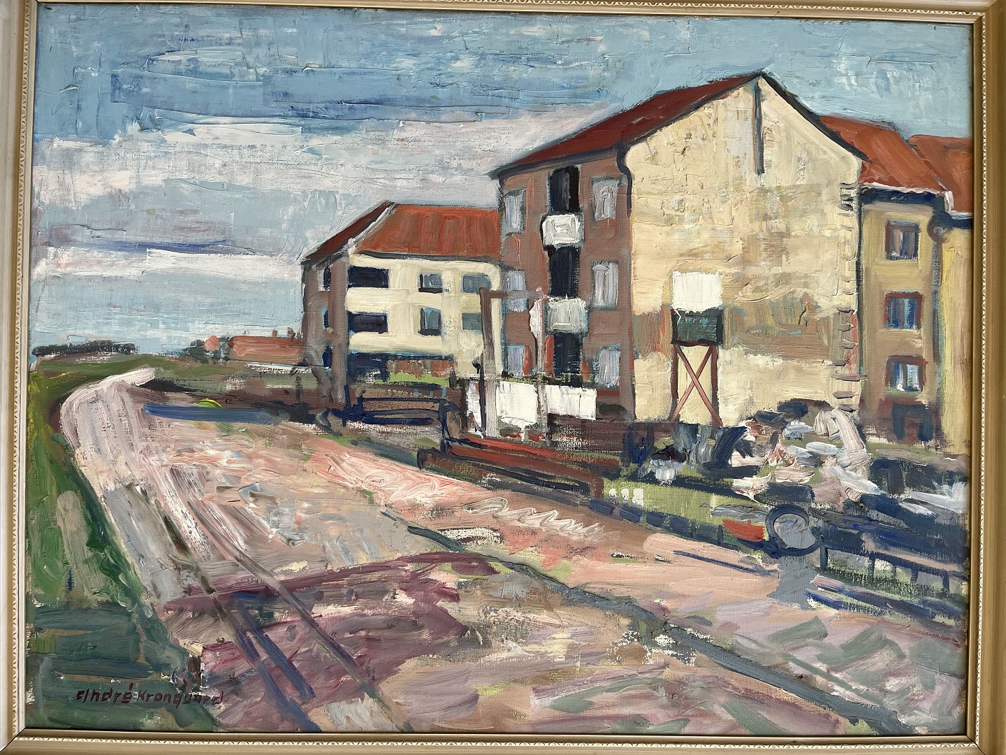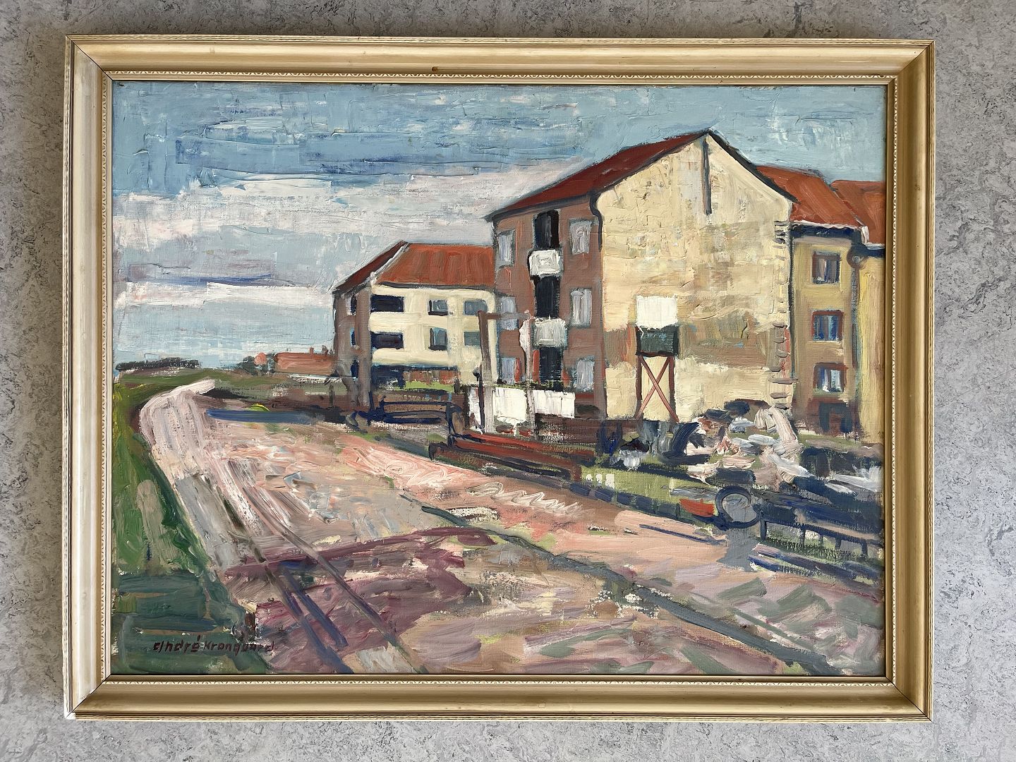 André Krongaard (20 årh):Vej gennem by med karréer.