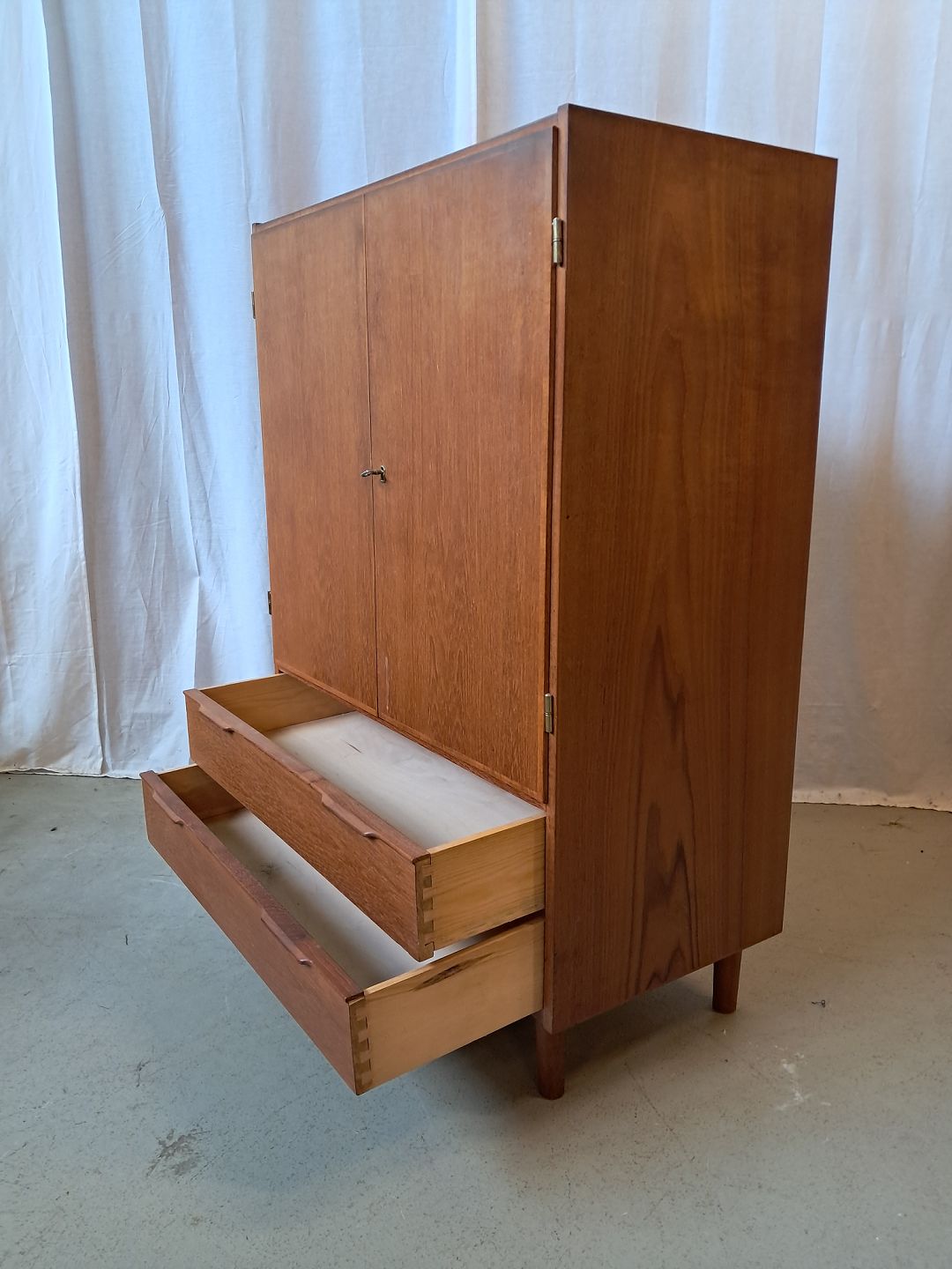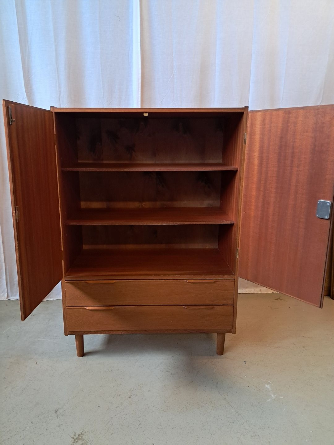 Skab i fineret teaktræ, fra 1960erne.Det har brugsspor.