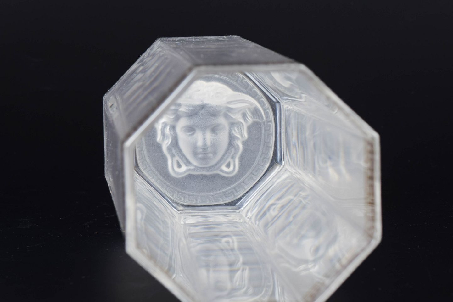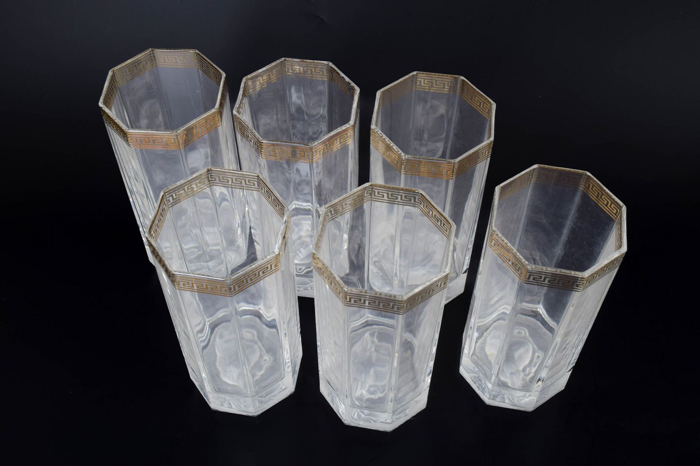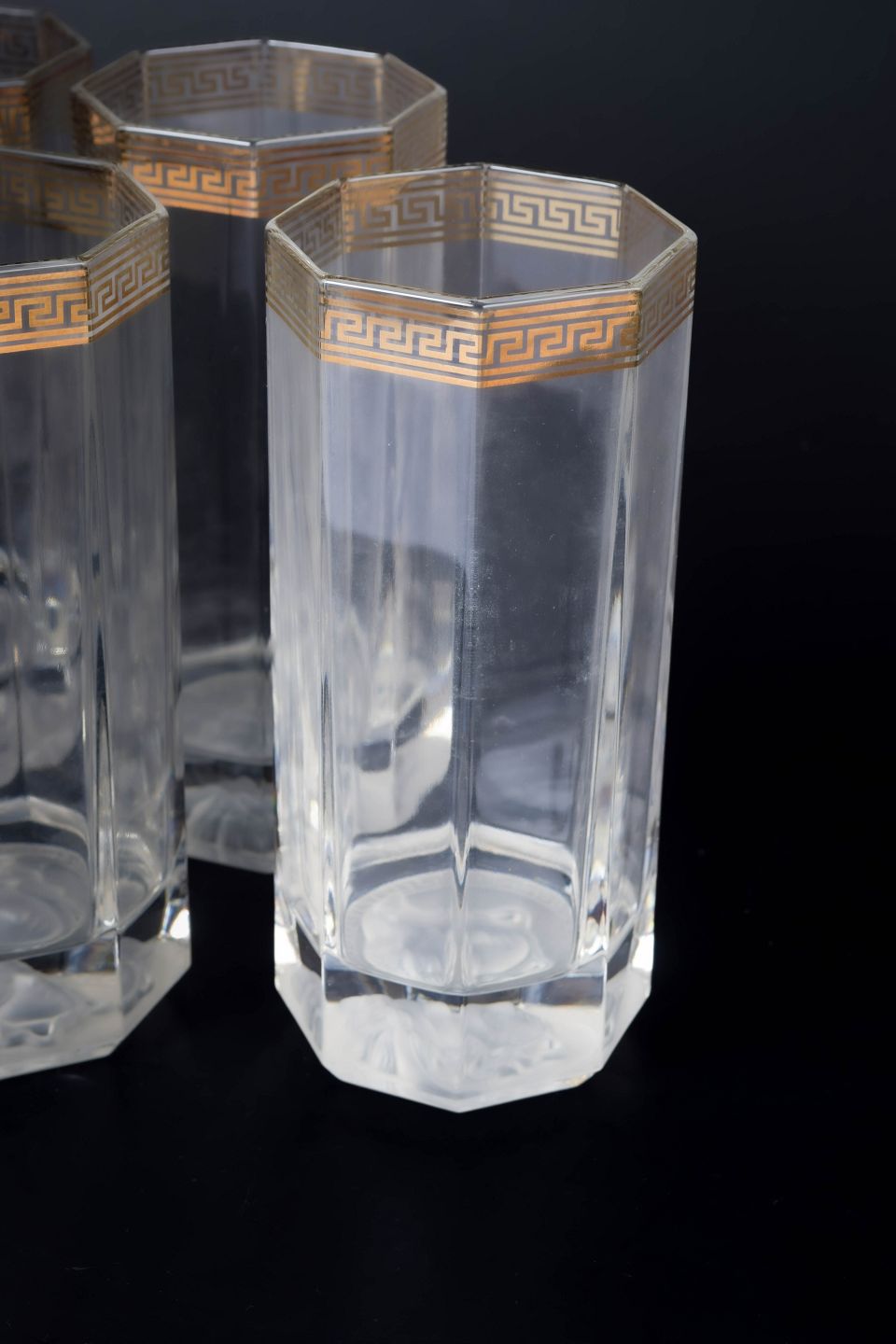 Versace for Rosenthal, sæt af seks drikkeglas "Medusa".Sæt af seks høje drikkeglas i klart glas med karakteristisk Medusa-motiv fra Versace-serien produceret af Rosenthal.
