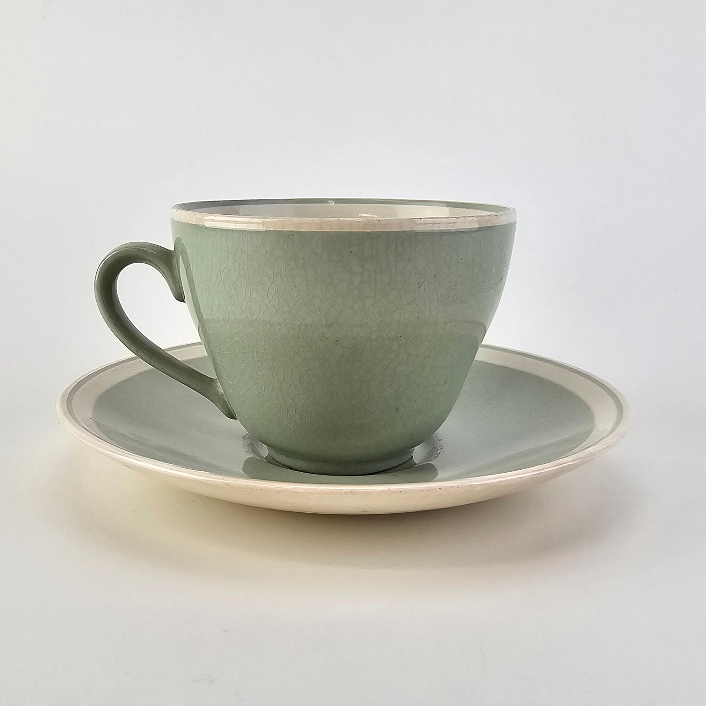 Kop med underkop i fajance fra stellet Corinna fremstillet i perioden 1937-1966Formgiver Nils Thorsson