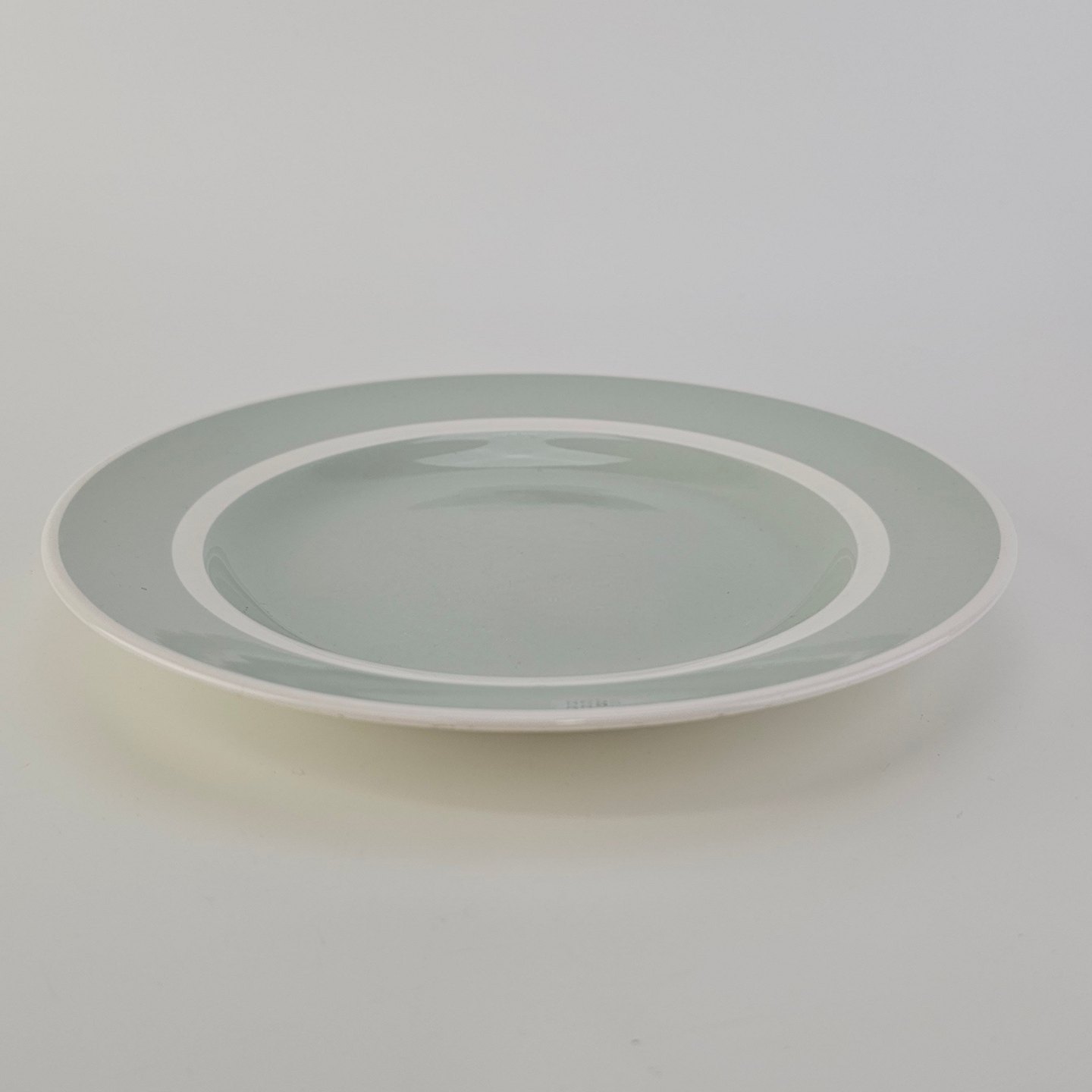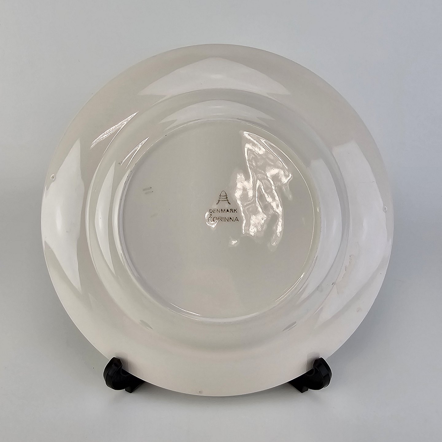 Flad tallerken i fajance fra stellet Corinna fremstillet i perioden 1937-1966Formgiver Nils Thorsson