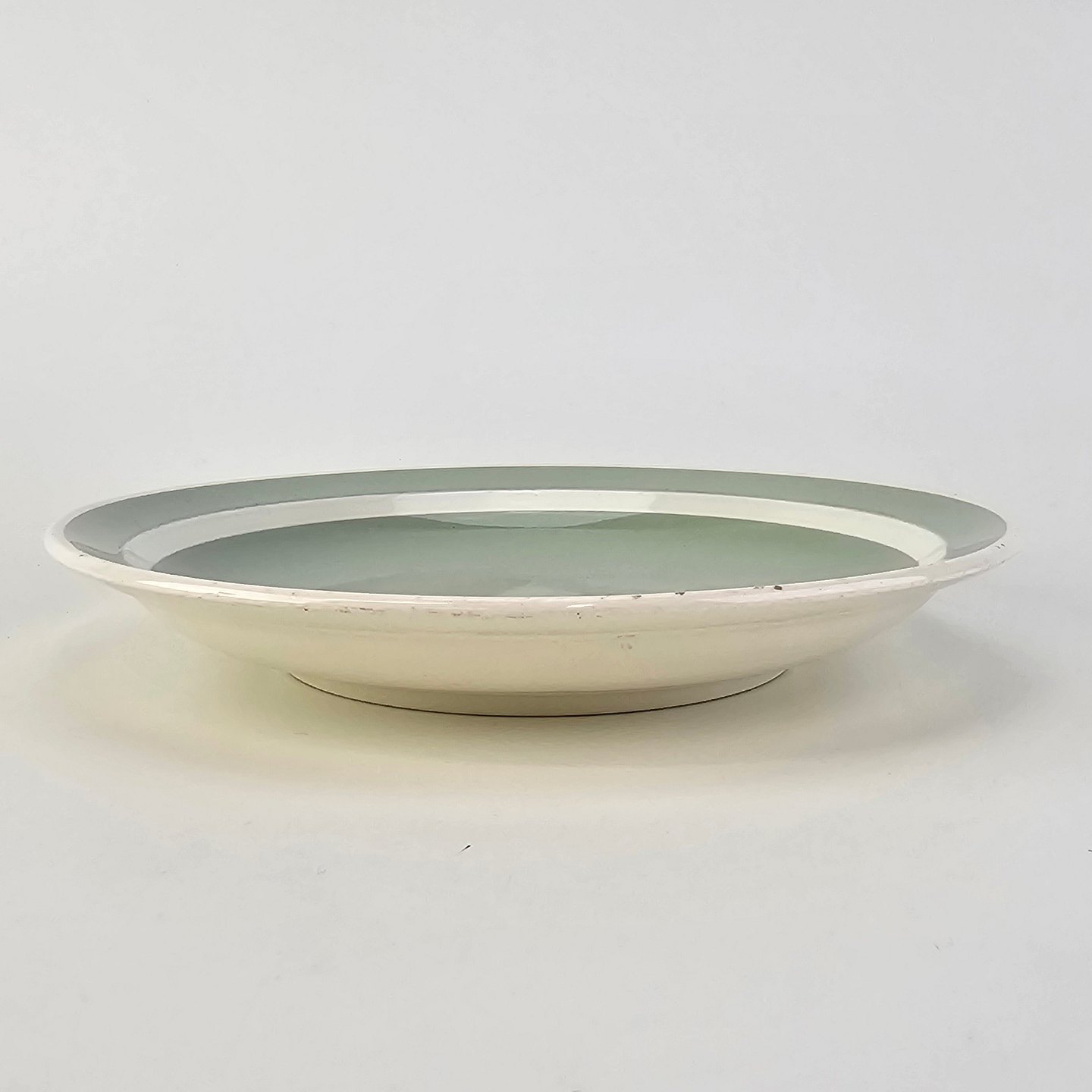 Fajancestel i pastelgrøn farve med hvid stribe