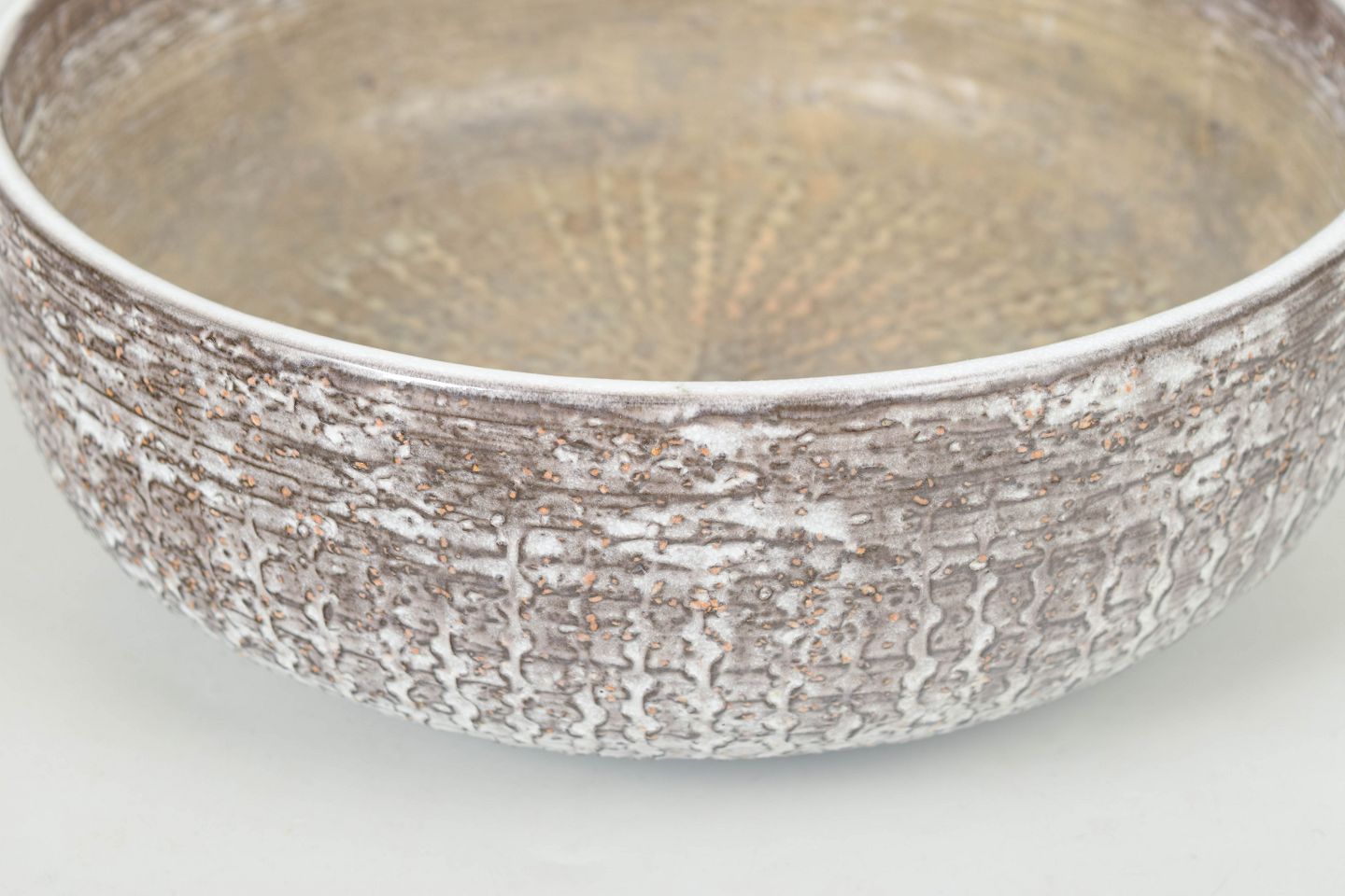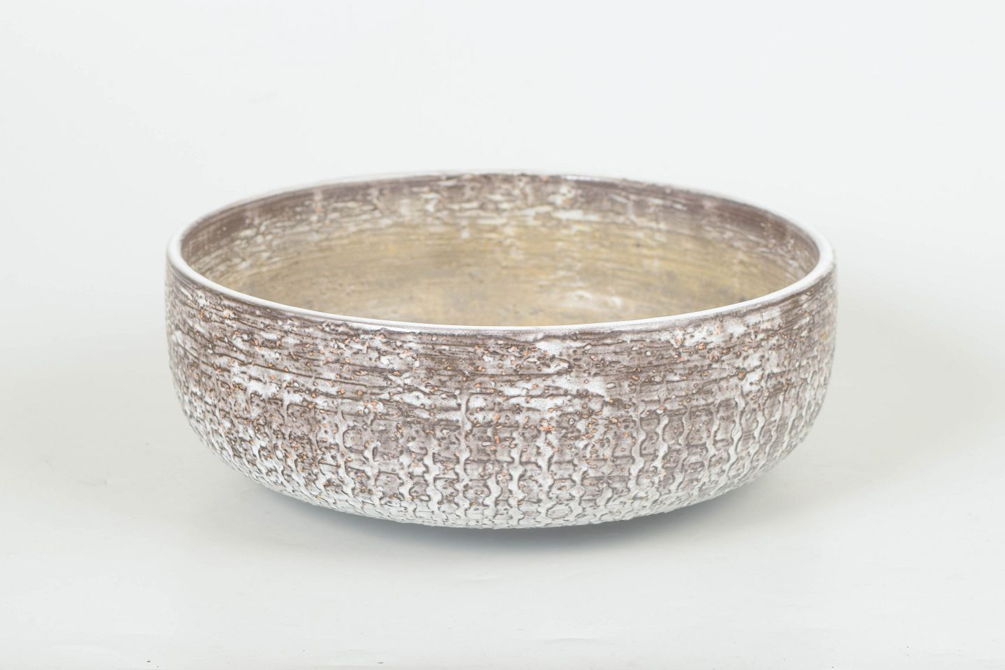 Mari Simmulson for Upsala Ekeby, skål.Rund dekorativ skål model 6024 med tekstureret overflade i glaseret keramik med organisk relief og sølvfarvet finish.