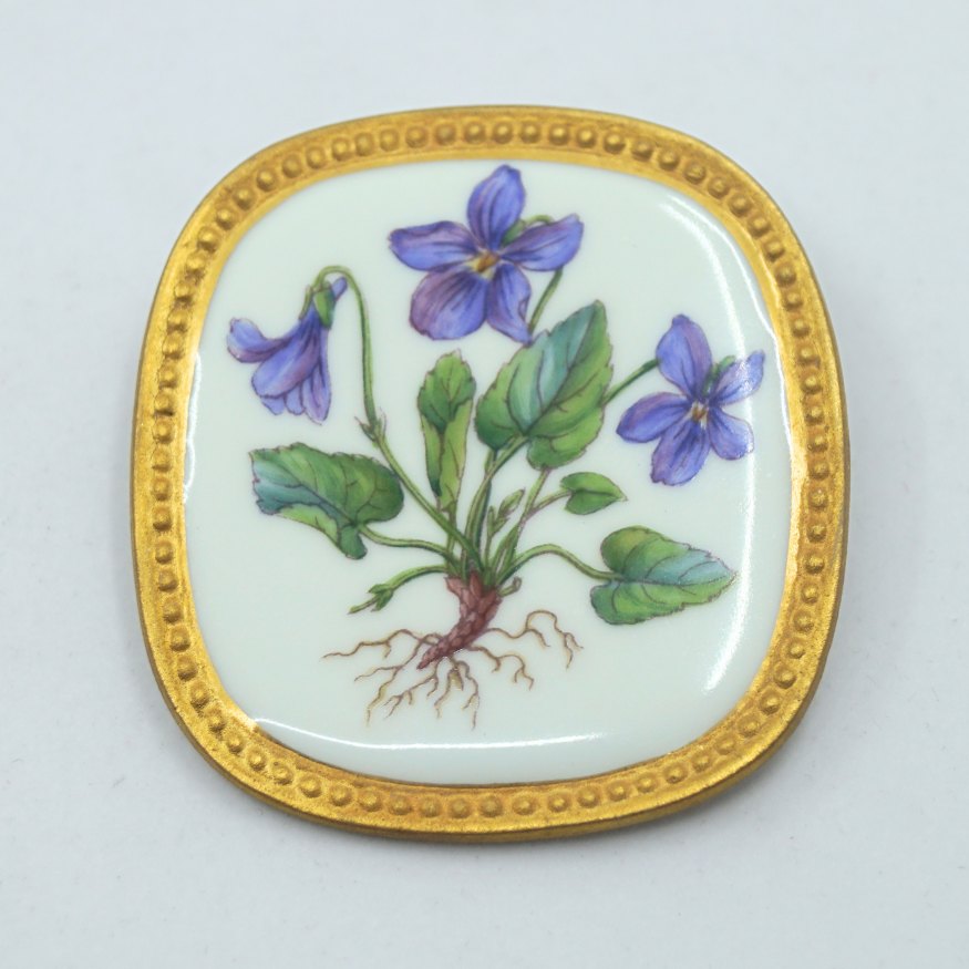 Royal Copenhagen; Flora Danica broche/vedhæng af porcelæn,