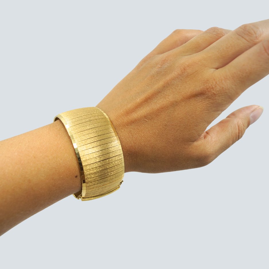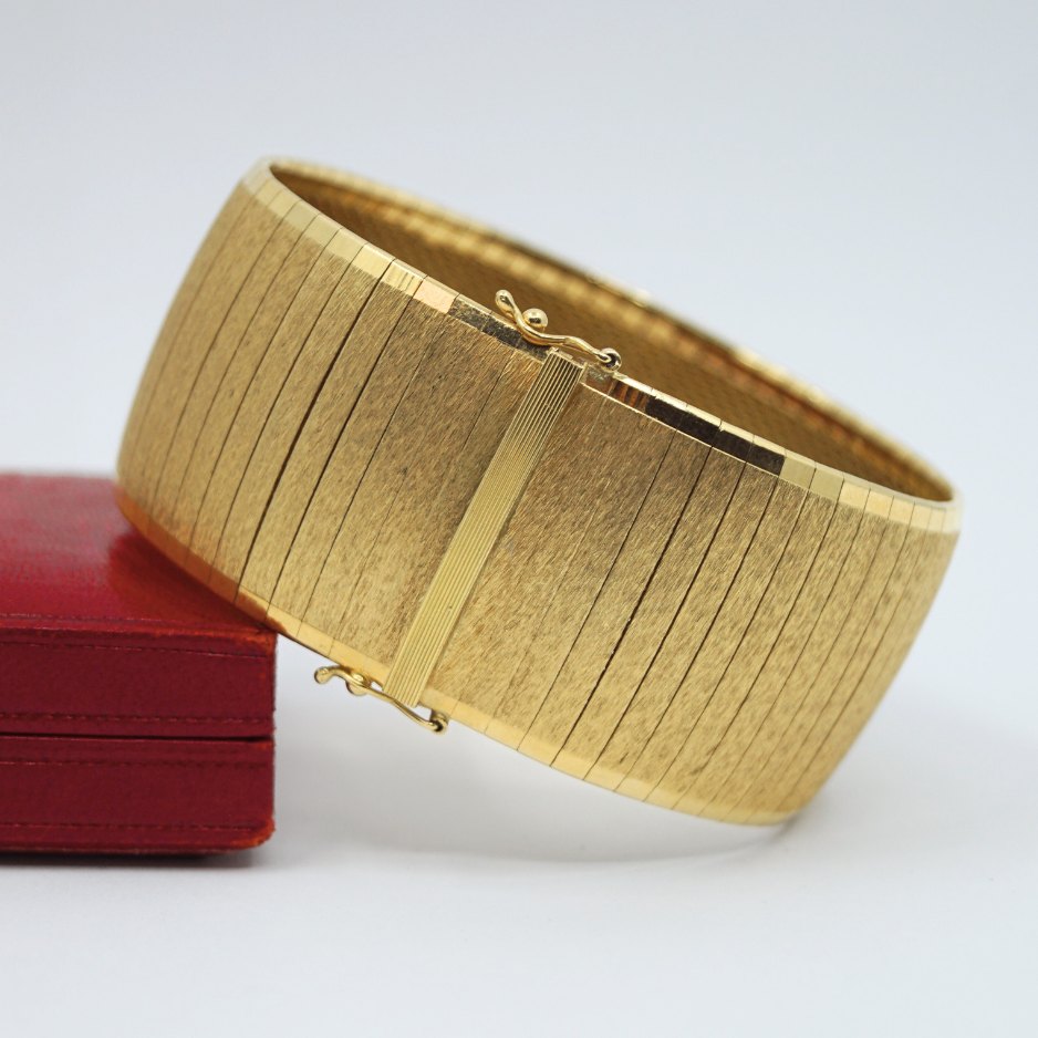 Meget bredt armbånd af 18 kt. guld i kraftig kvalitet.