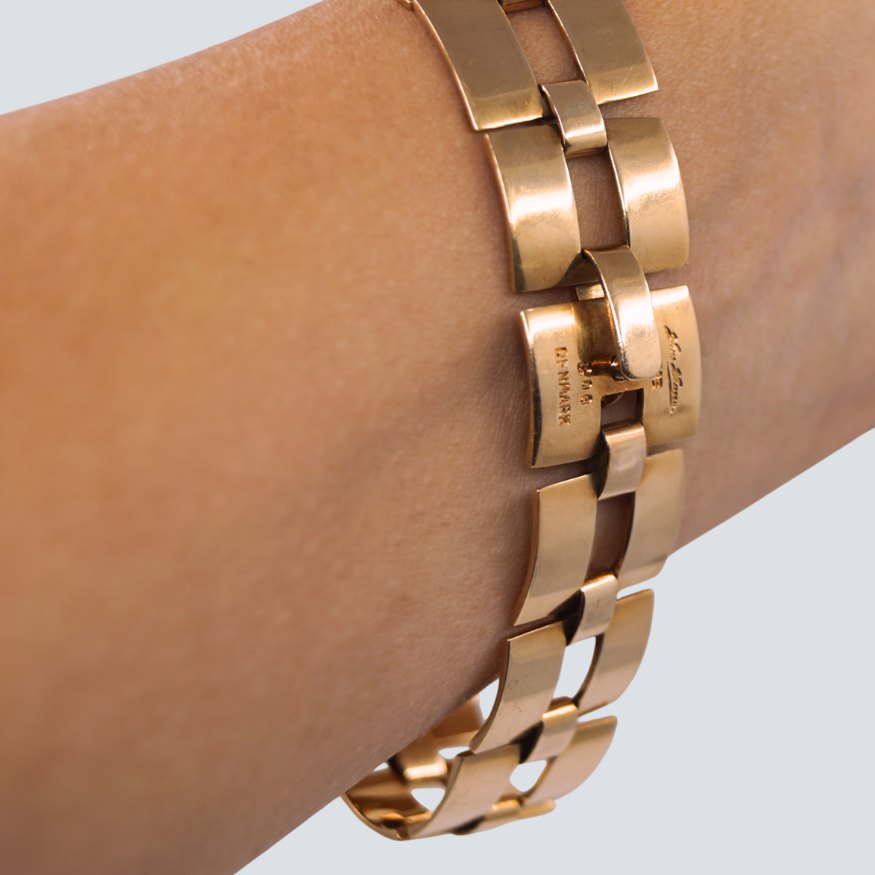 Hans Hansen; Leddelt armsmykke i 14 kt. guld. Med skruelås