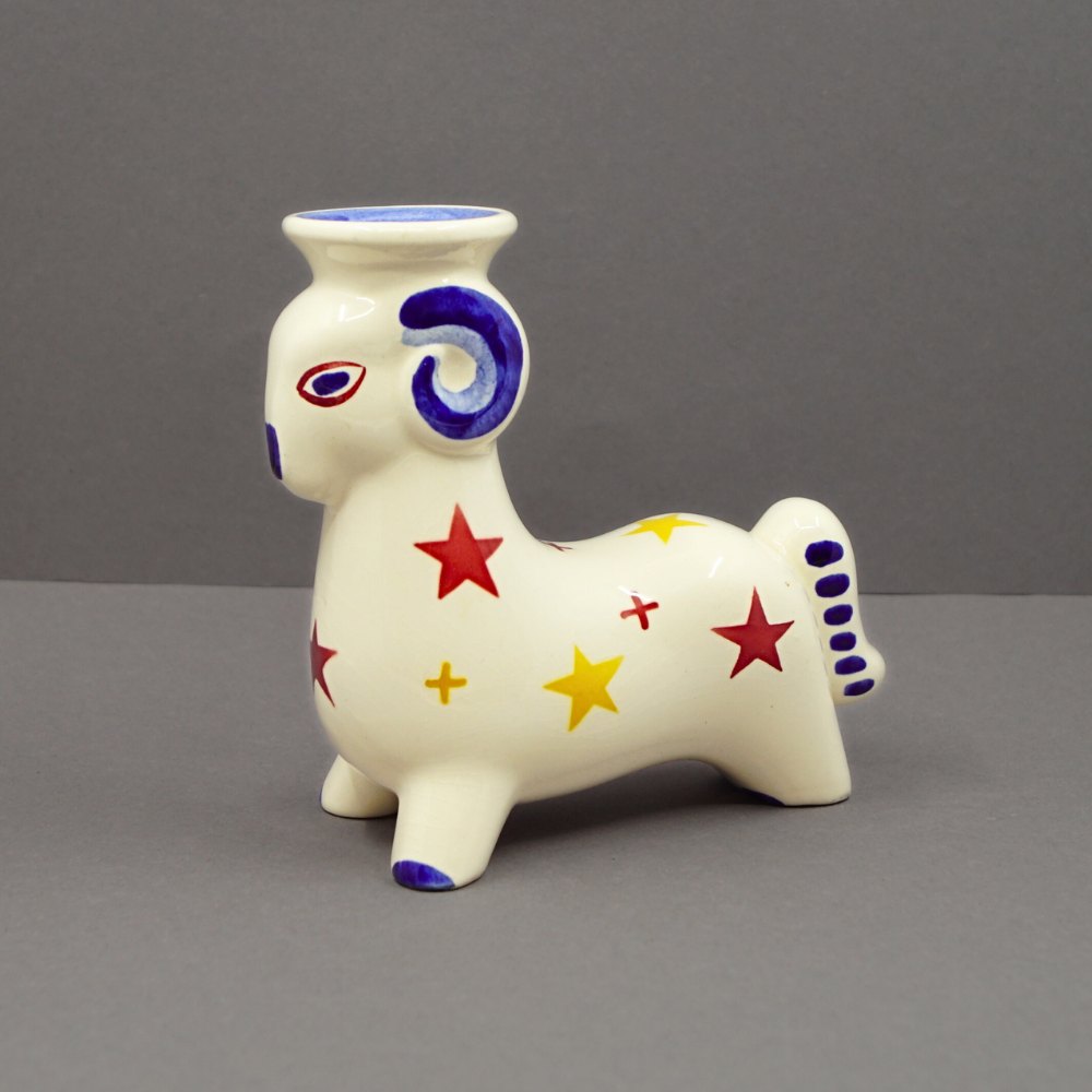 Aluminia; Julebuk i fajance. I blå, rød og gul. Med plads til et lys. H. 10 cm. L. 11 cm. Aluminia fajance Danmark. Kontakt os gerne, hvis du søger noget specifikt. Hvad du ser på vores hjemmeside, er blot et udvalg af det, som vi har.