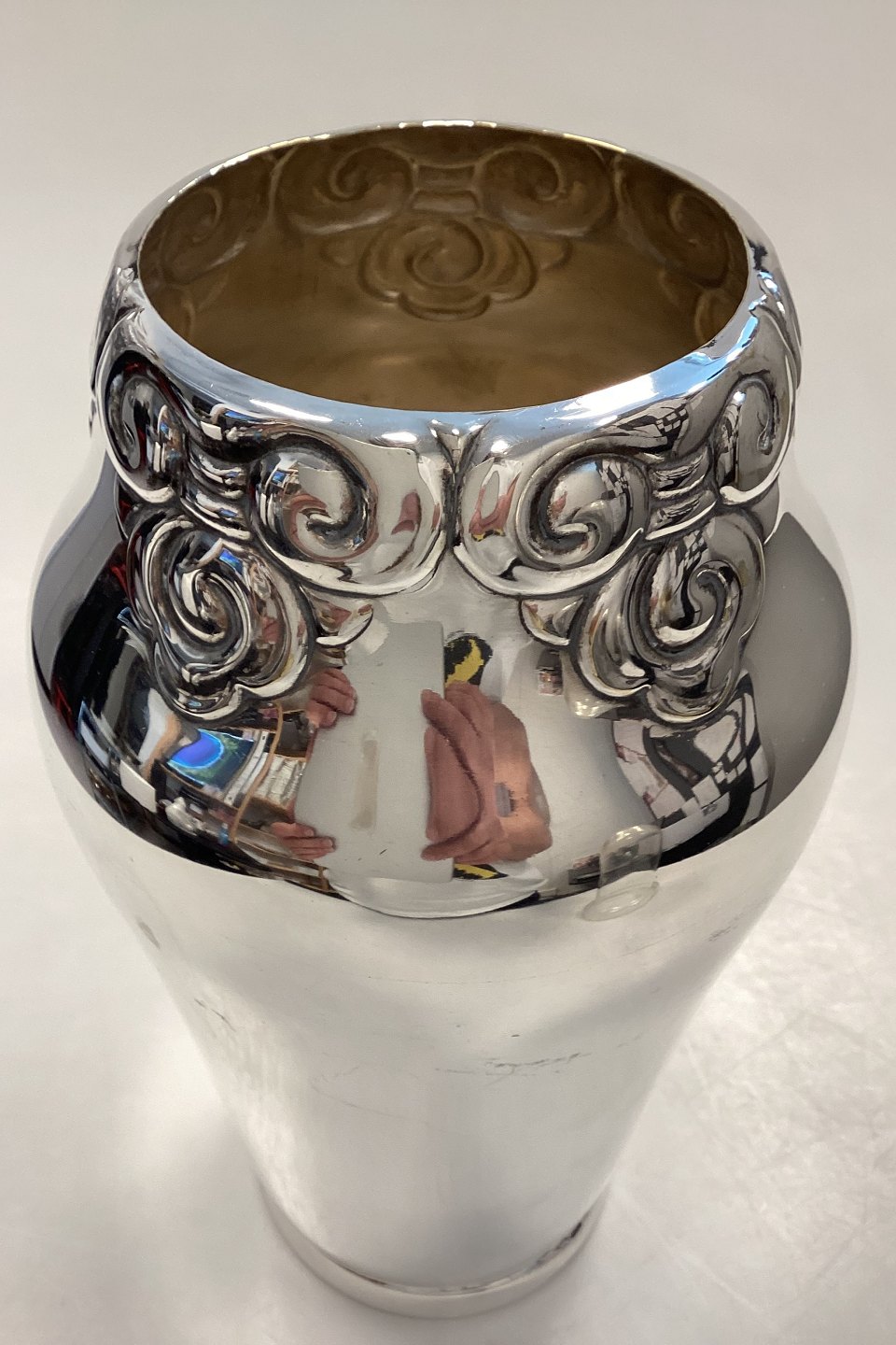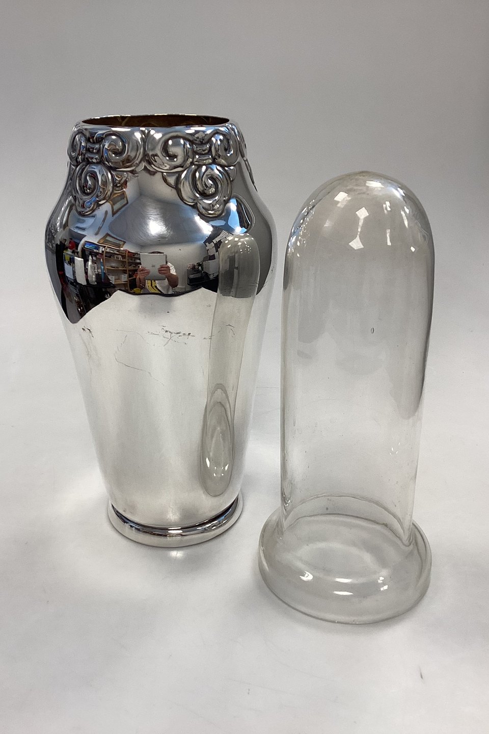 Art Nouveau / Deco Sølvplet Vase med glasindsats. Dansk produceret mærket Eneret Astral. Tydelige slidmærker på den ene side, se fotos.
