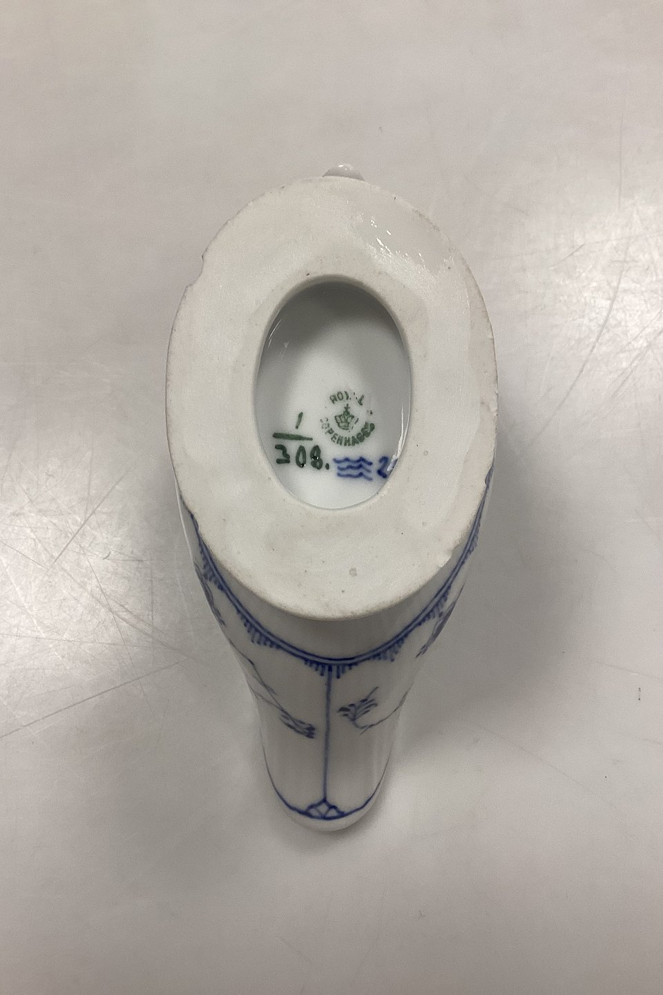 Royal Copenhagen Musselmalet Riflet Saucekande No. 308. Med flere små afslag på foden, se fotos.
