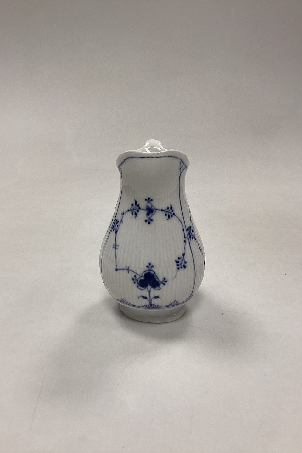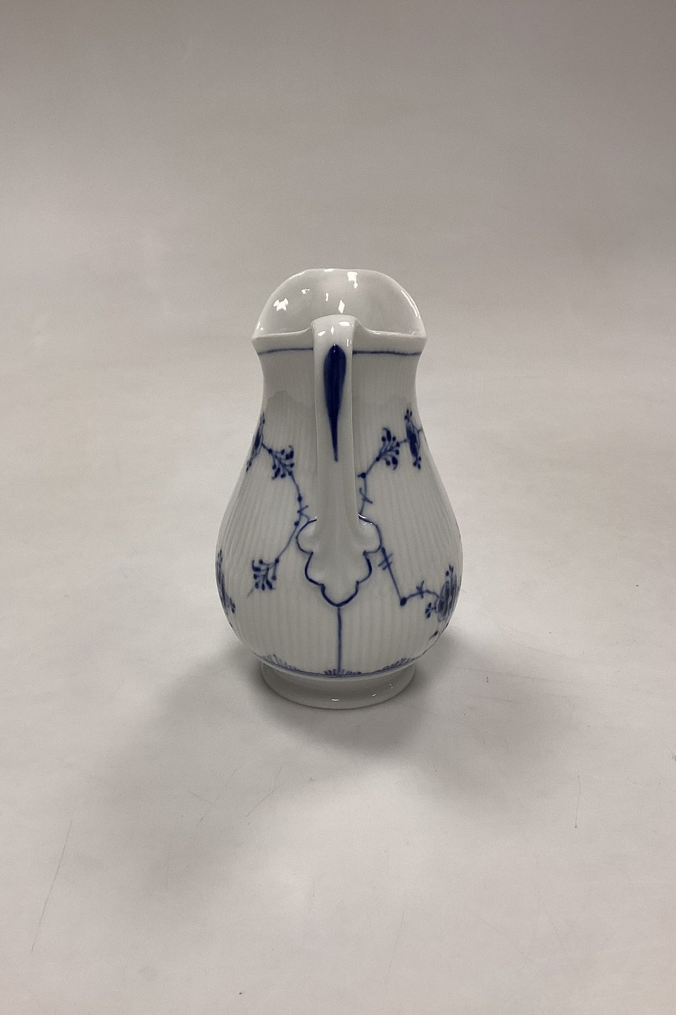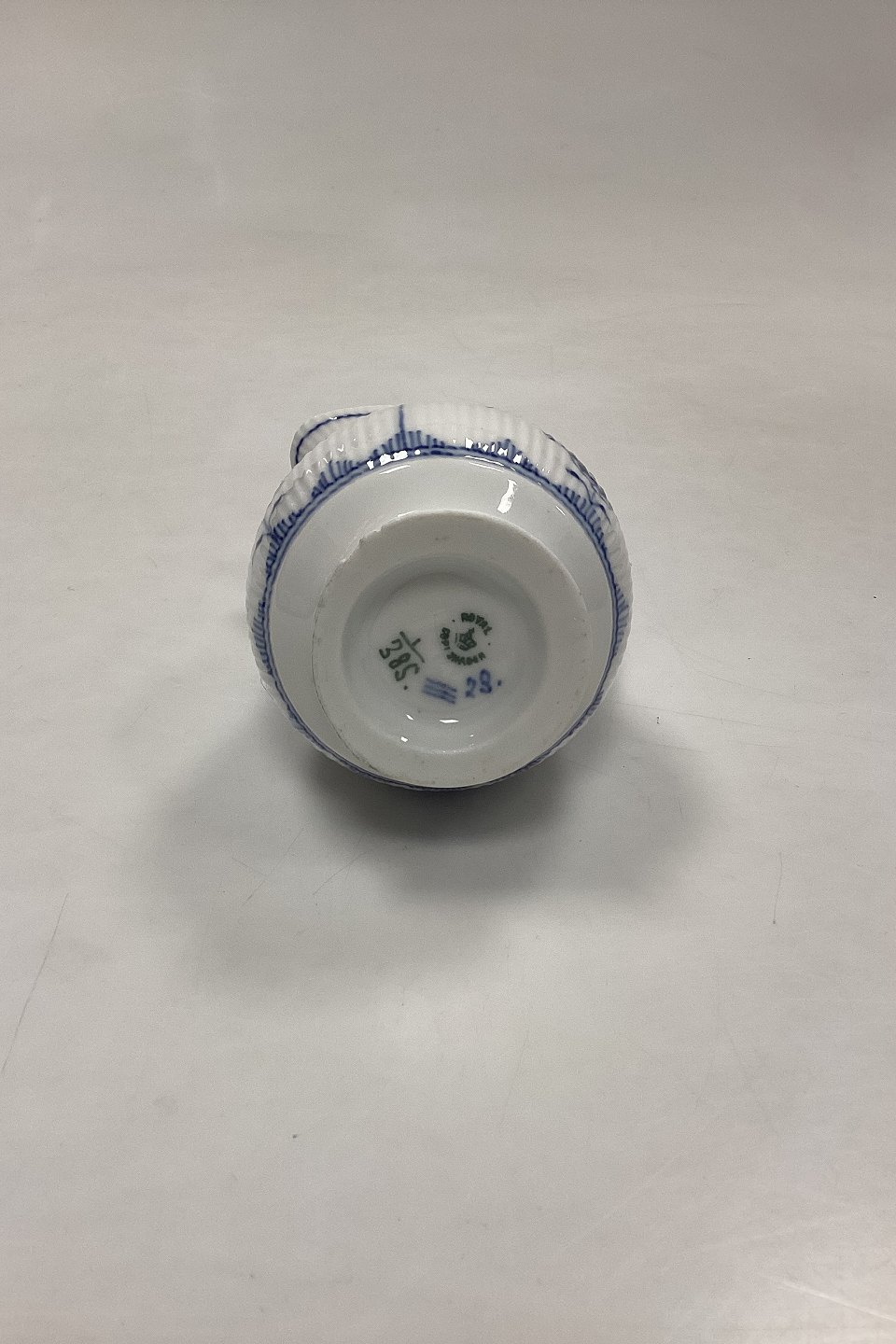 Royal Copenhagen Musselmalet Riflet Flødekande No. 385. Har små afslag i bunden, se foto.