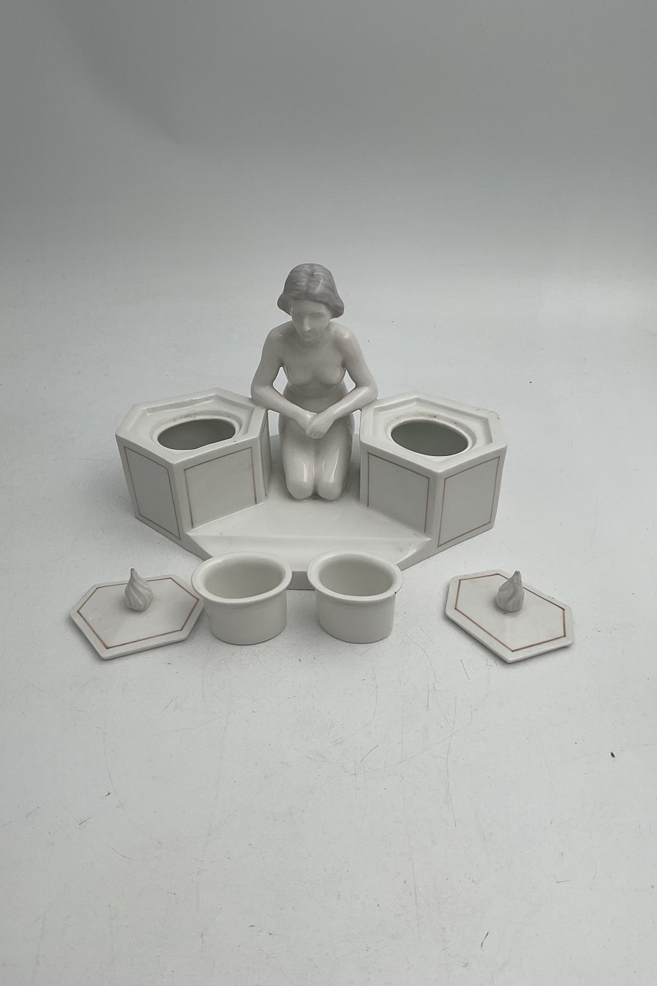Bing and Grondahl Art Nouveau Inkwell Set with Girl No. 1556