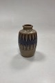 L. Hjort Keramik Vase. Beige, brun og blå glasur med moderne grafisk dekoration.