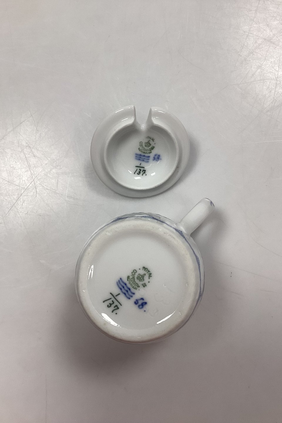 Royal Copenhagen Musselmalet Riflet Sennepskrukke med låg No. 137