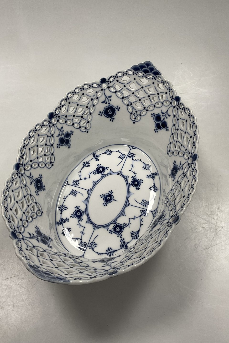 Royal Copenhagen Musselmalet Helblonde Frugtkurv/Oval Skål No. 1059. Modellør Emil Larsen, november 1892.