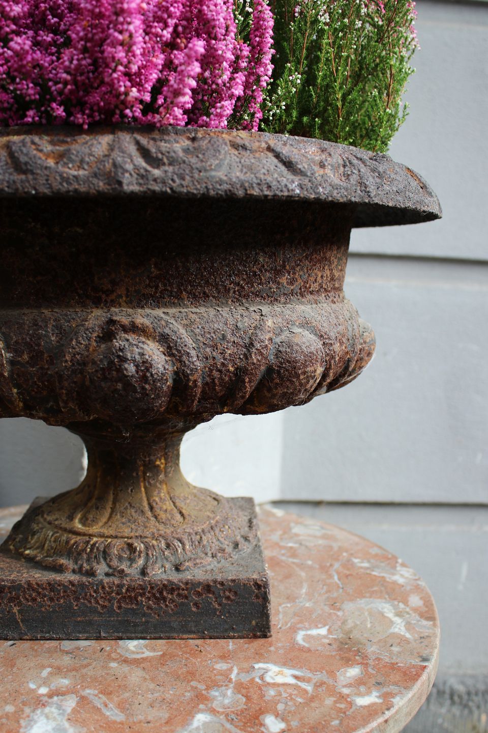 Franske 1800 tals støbejerns krukker med en rigtig fin gammel patina.
