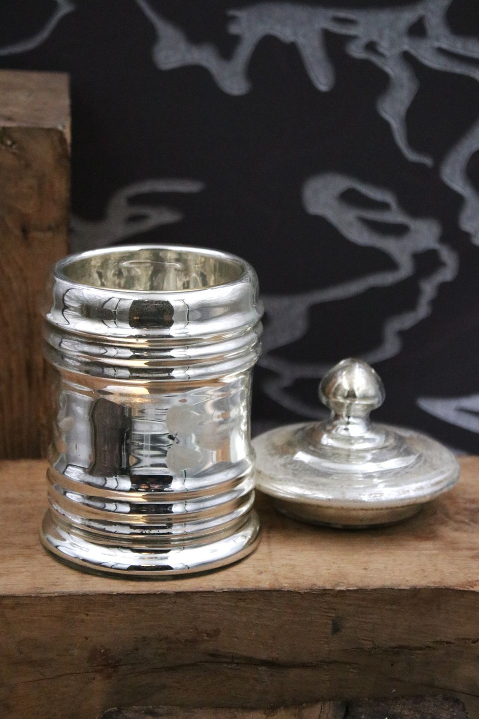 1800 tals låg krukke i fattigmandssølv med en rigtig fin patina. H: 17cm. Dia.: 9,5cm. Emne nummer: Fattigmandssølv krukke nr.1