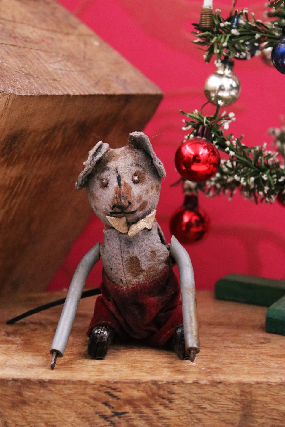 Gammel "mekanisk" (mangler nøgle) "jule-mus" i metal