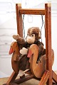 Sød , lille plys abe siddende i gammel træ gynge. Gynge H: 18,5cm. 12x9cm. Abe H: 11cm. Emne nummer: Abe i gynge