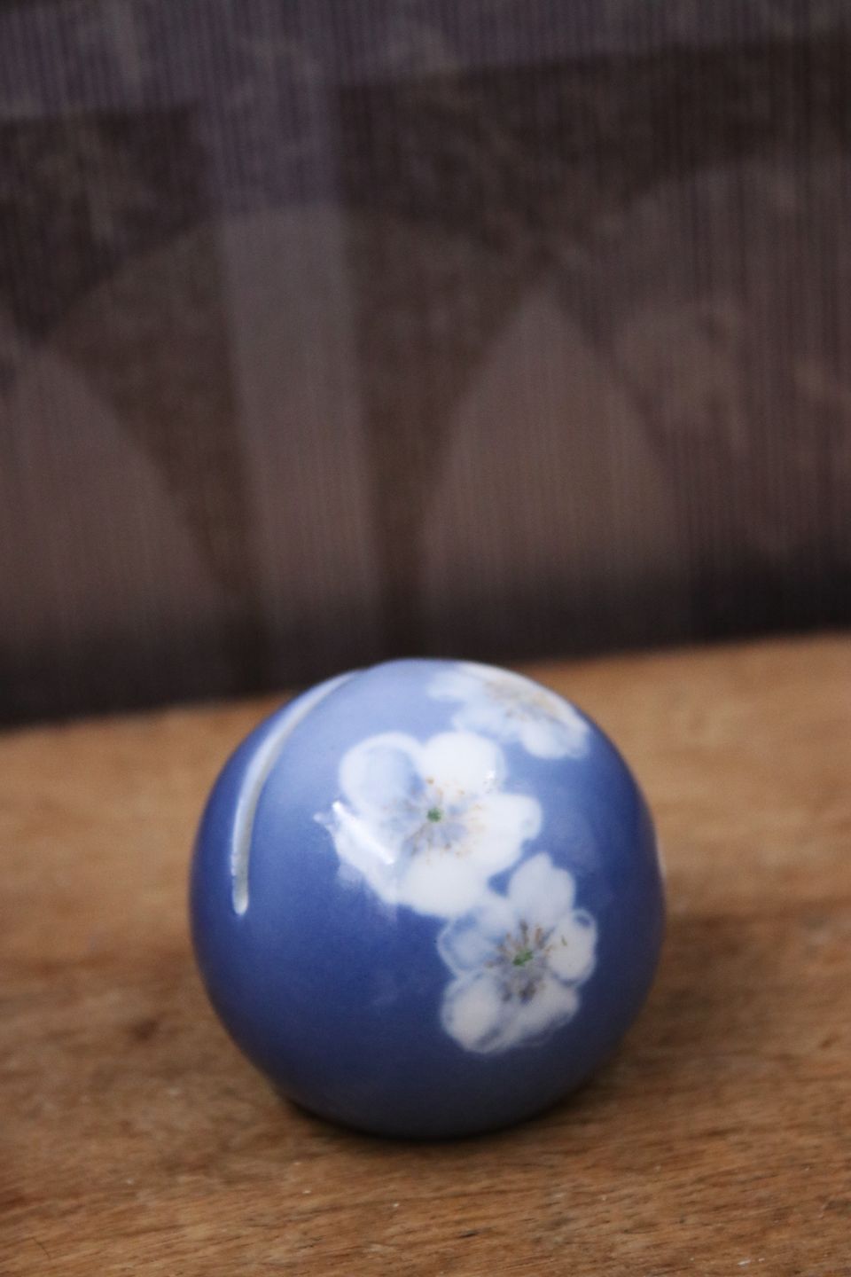 Sjælden Art Nouveau bordkortholder fra Bing & Grøndahl (B&G) dekoreret med blomstermotiv. Dia.5cm. Emne nummer: B&G# Bordkort holder nr.2
