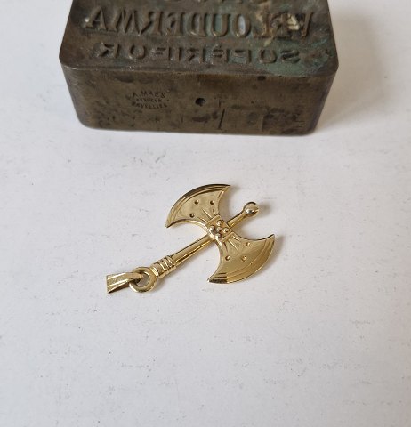 Greek pendant in 14kt gold, made as a double axe - Labrys. The axe is known from Crete - Knossos. Stamped 585 Weight 4.7 grams. Length 5 cm. Width 3 cm.