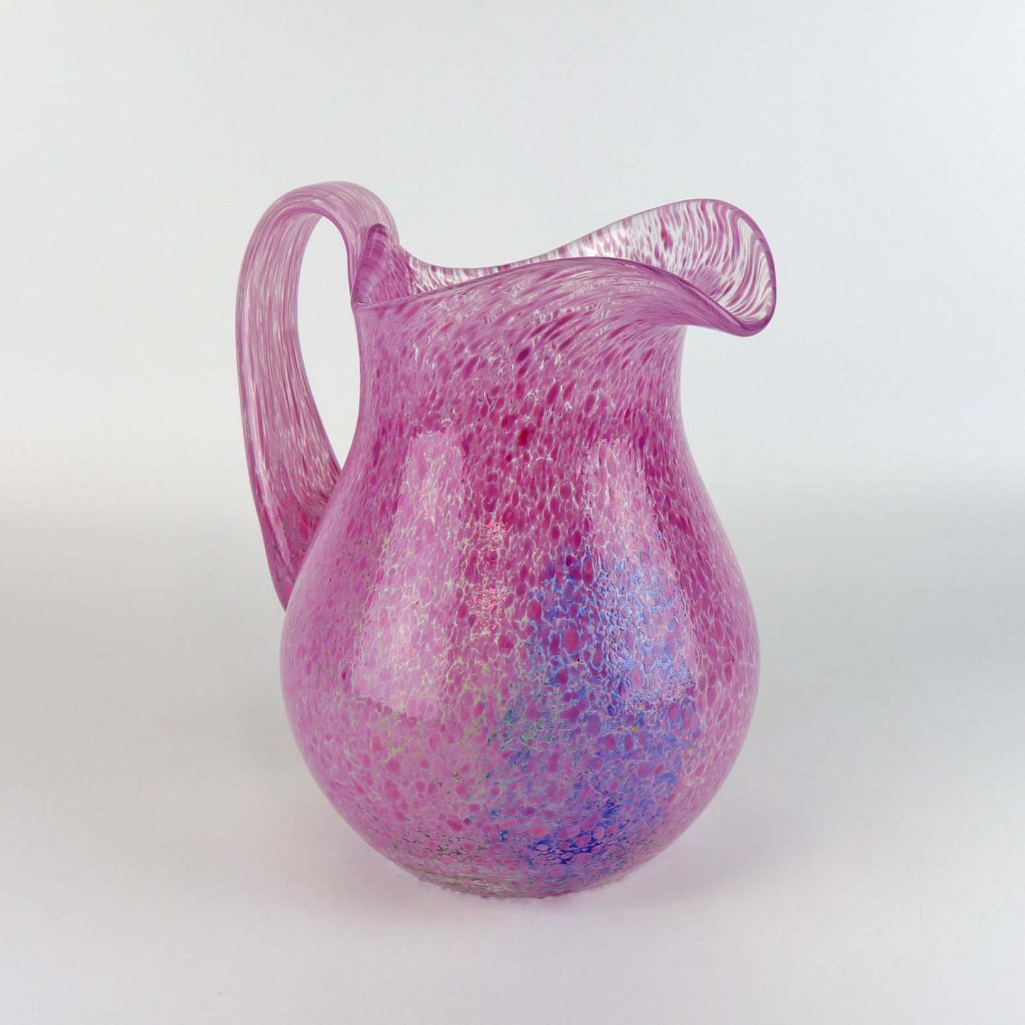 Vandkande i klart glas med mønster i lyserød, grøn og blå. Kanden er fra Kosta Bodas kunstner kollektion. Nr. 87867