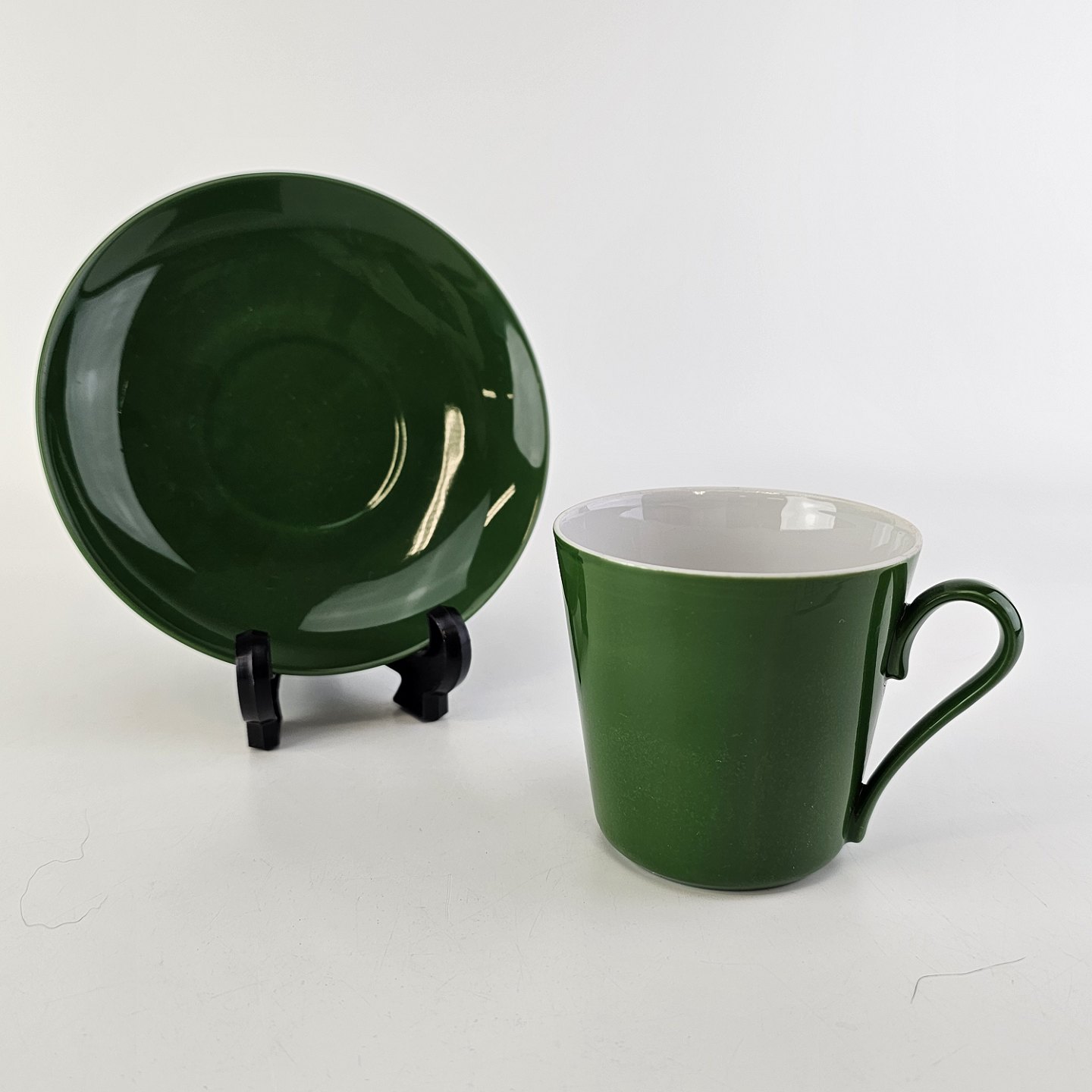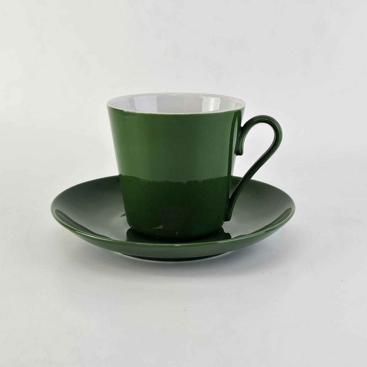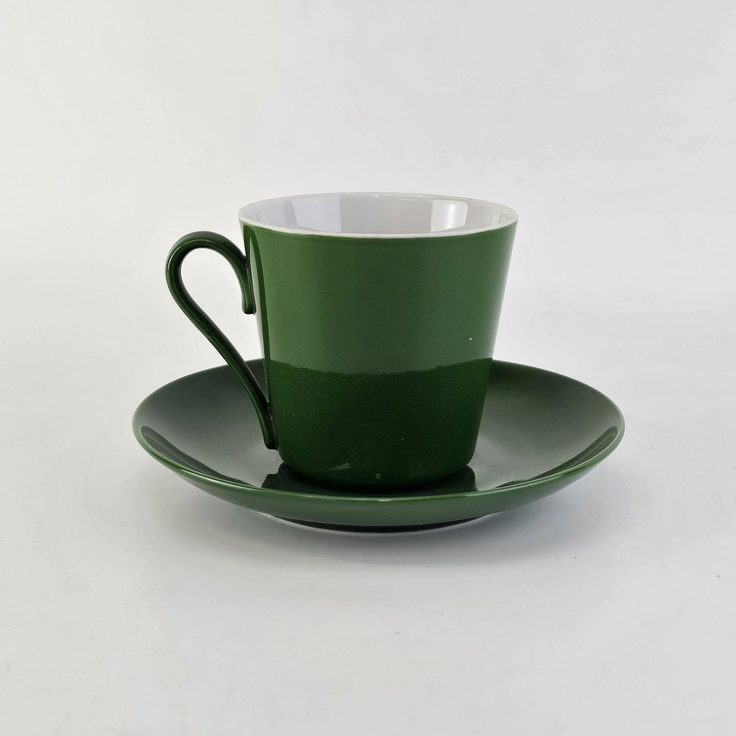 Kaffekop med underkop i porcelæn fra stellet Grøn Glasurfarvet