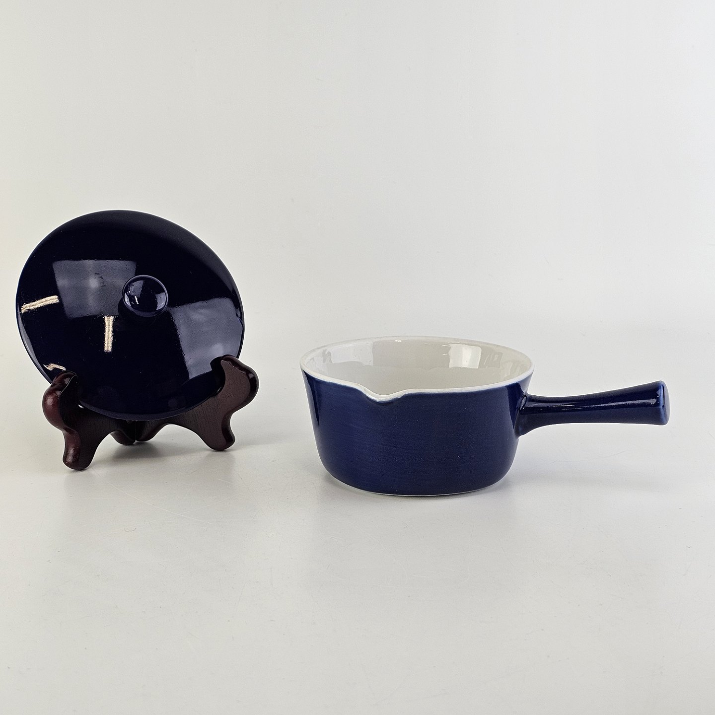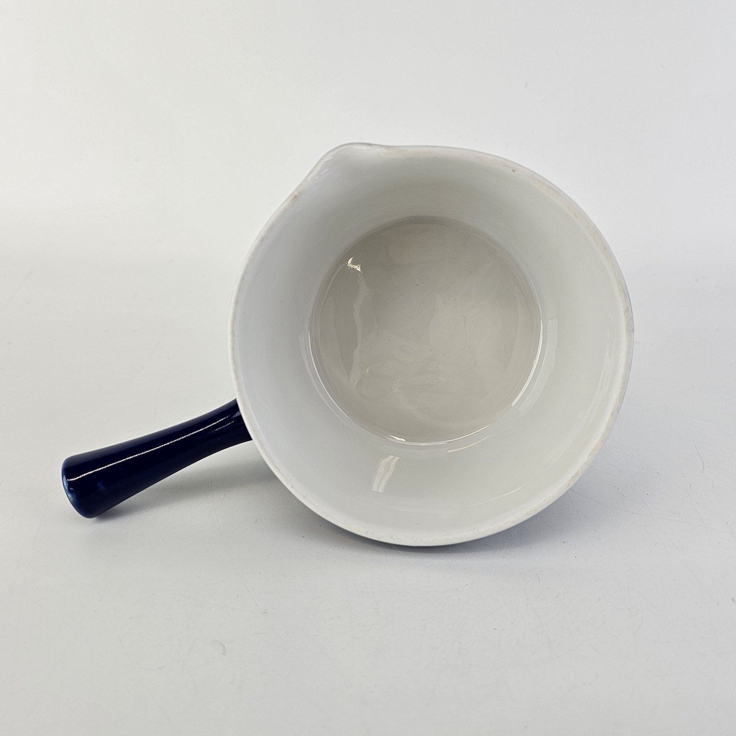 Smørnæb med håndtag og hældetud i porcelæn fra stellet Blå Glasurfarvet