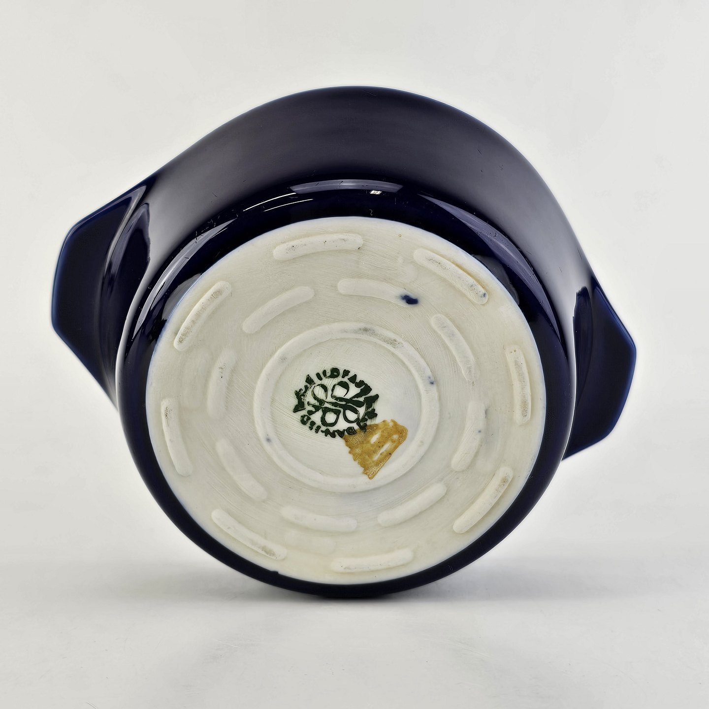 Skål med håndtag i porcelæn fra stellet Blå Glasurfarvet