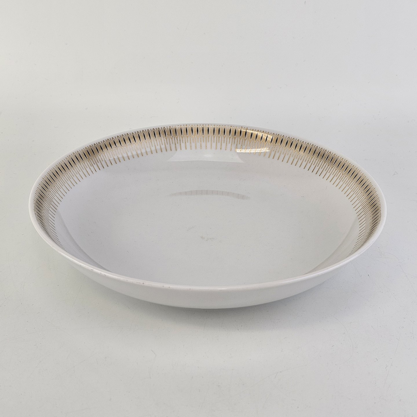Dyb tallerken i hvidt porcelæn med dekoration i guld fra stellet Trend 1220