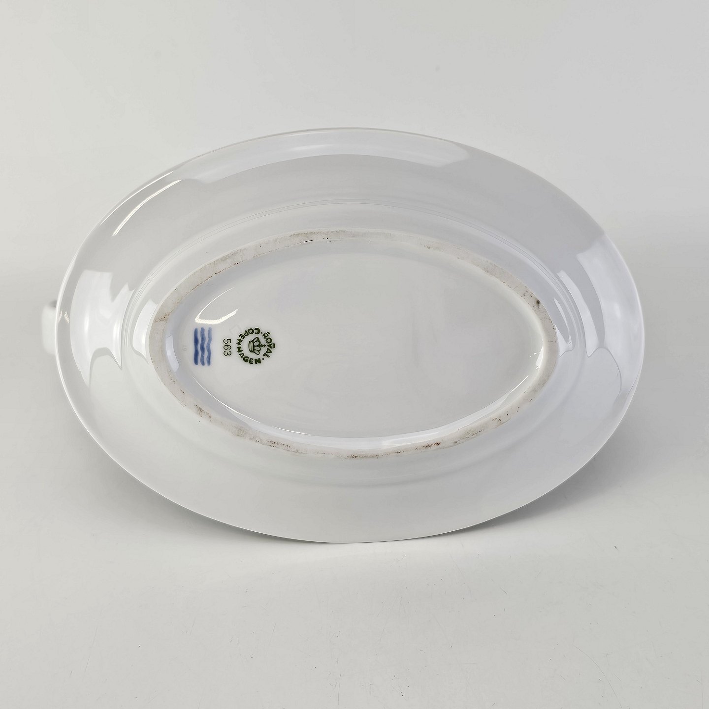 Liselund er hvidt porcelæn dekoreret i lyseblå eller mørkeblå nuancer, sovsekanden er uden fletmønster