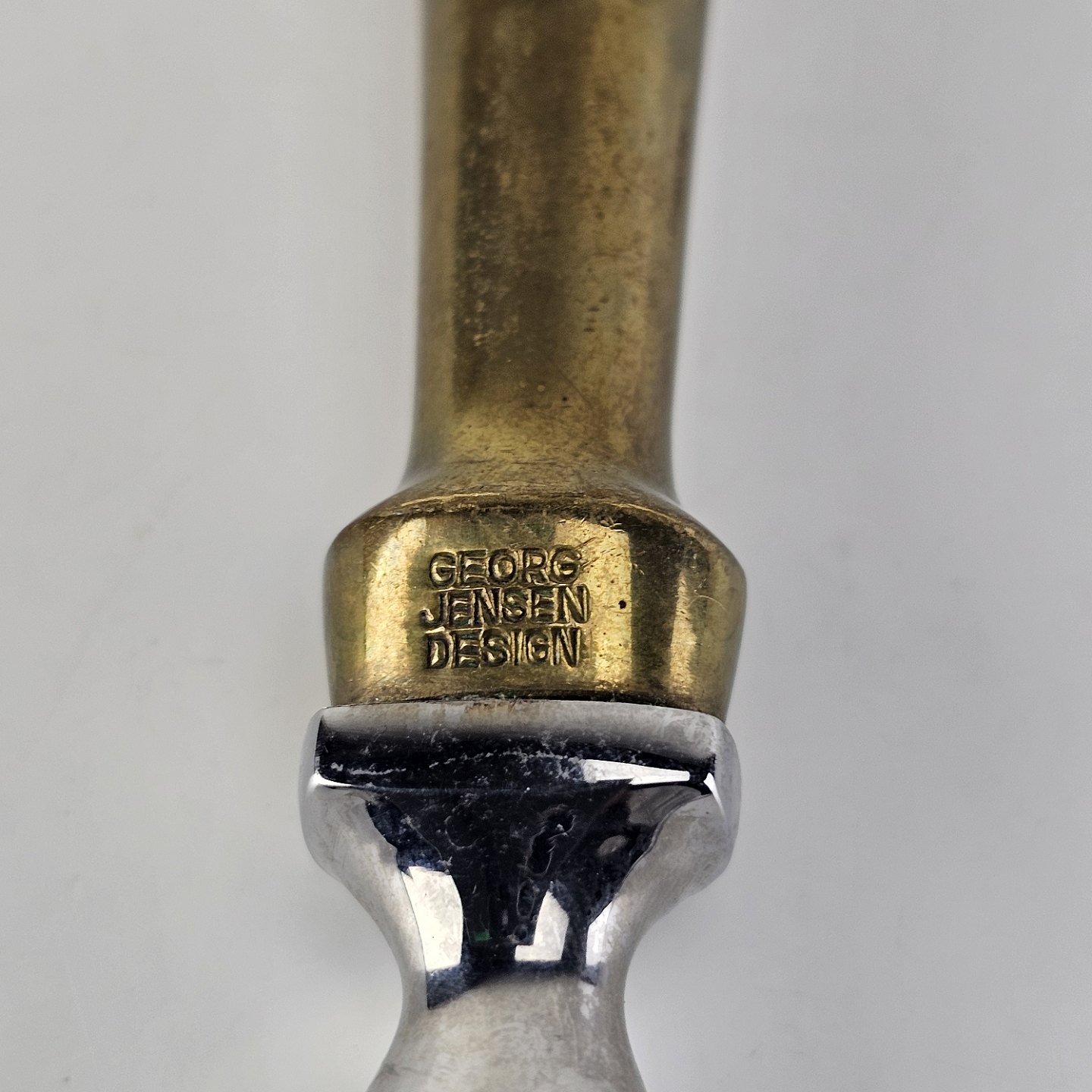 Stegegaffel i rustfrit stål med skaft af messing