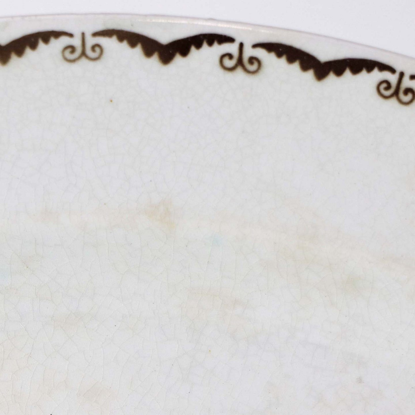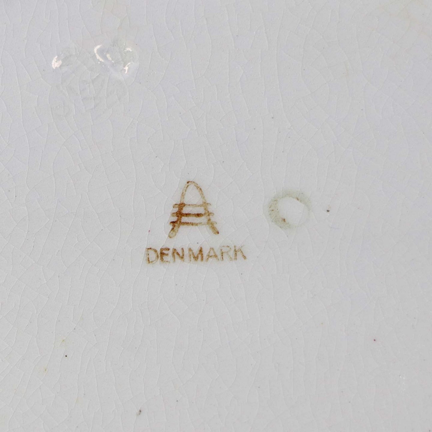 Fremstår med med krakkeleringer i glasuren og enkelte områder med mindre mørkninger under glasuren.