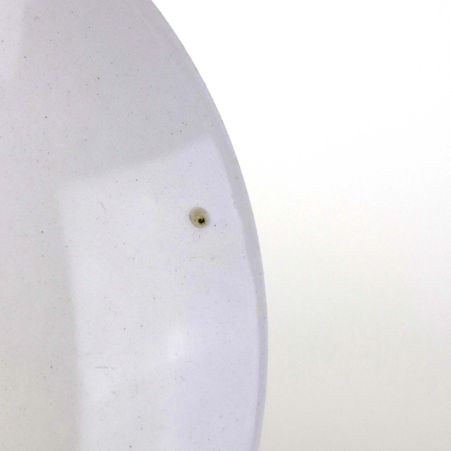 Fremstår med krakkeleringer i glasuren, mindre slid på glasuren på underkoppen og mindre mørknet område under glasuren på bagsiden af underkoppen.