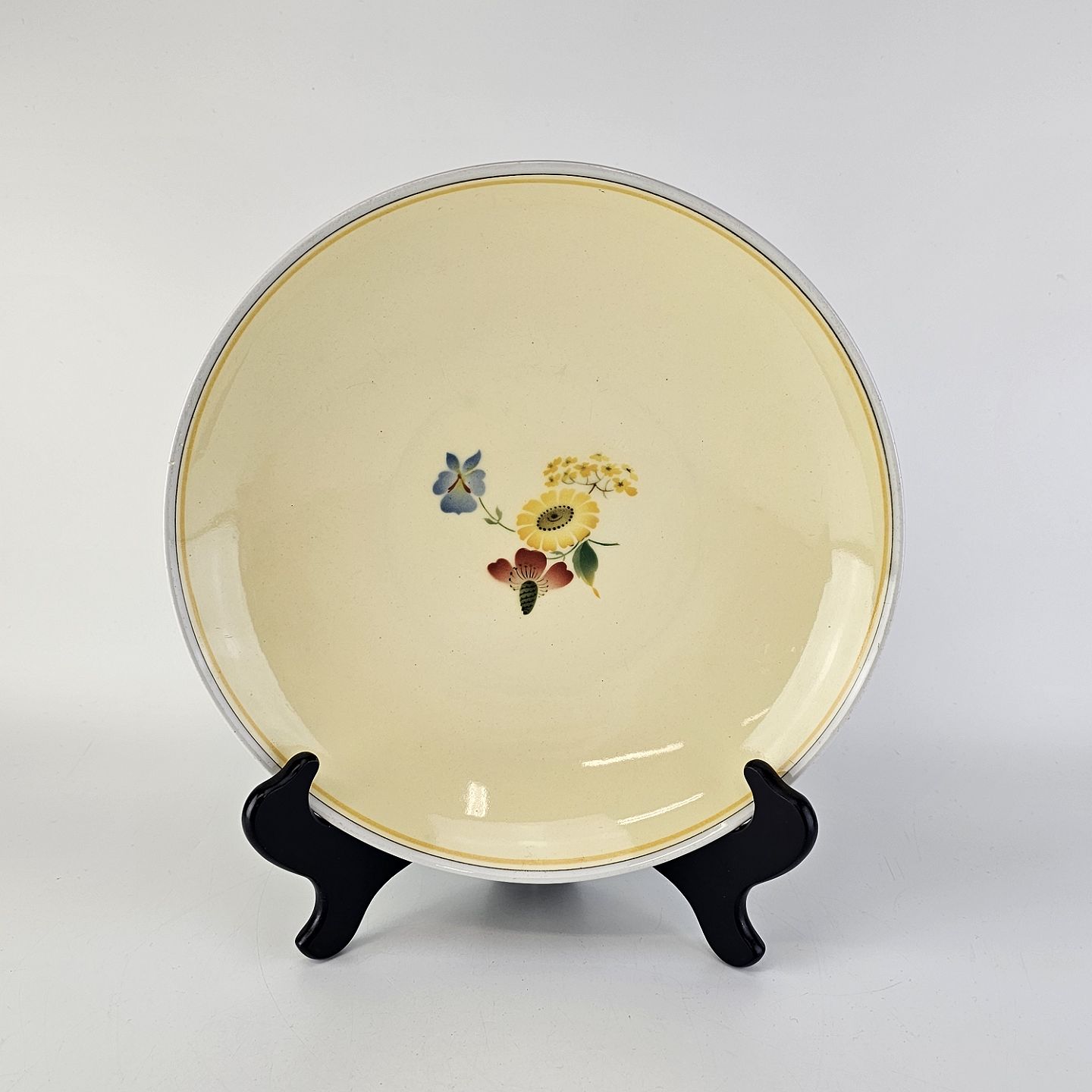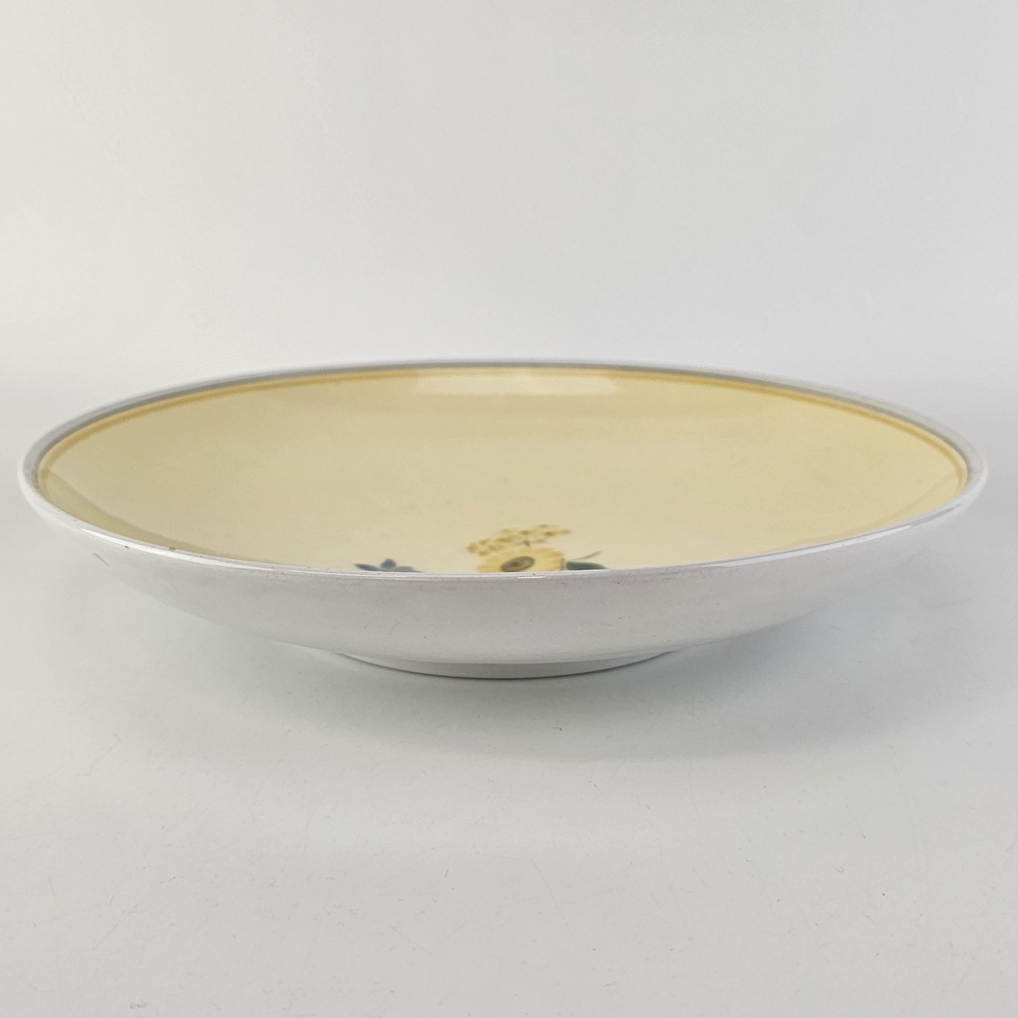 Stel i glat gul fajance med dekoration af farverige og forskelligartede blomster