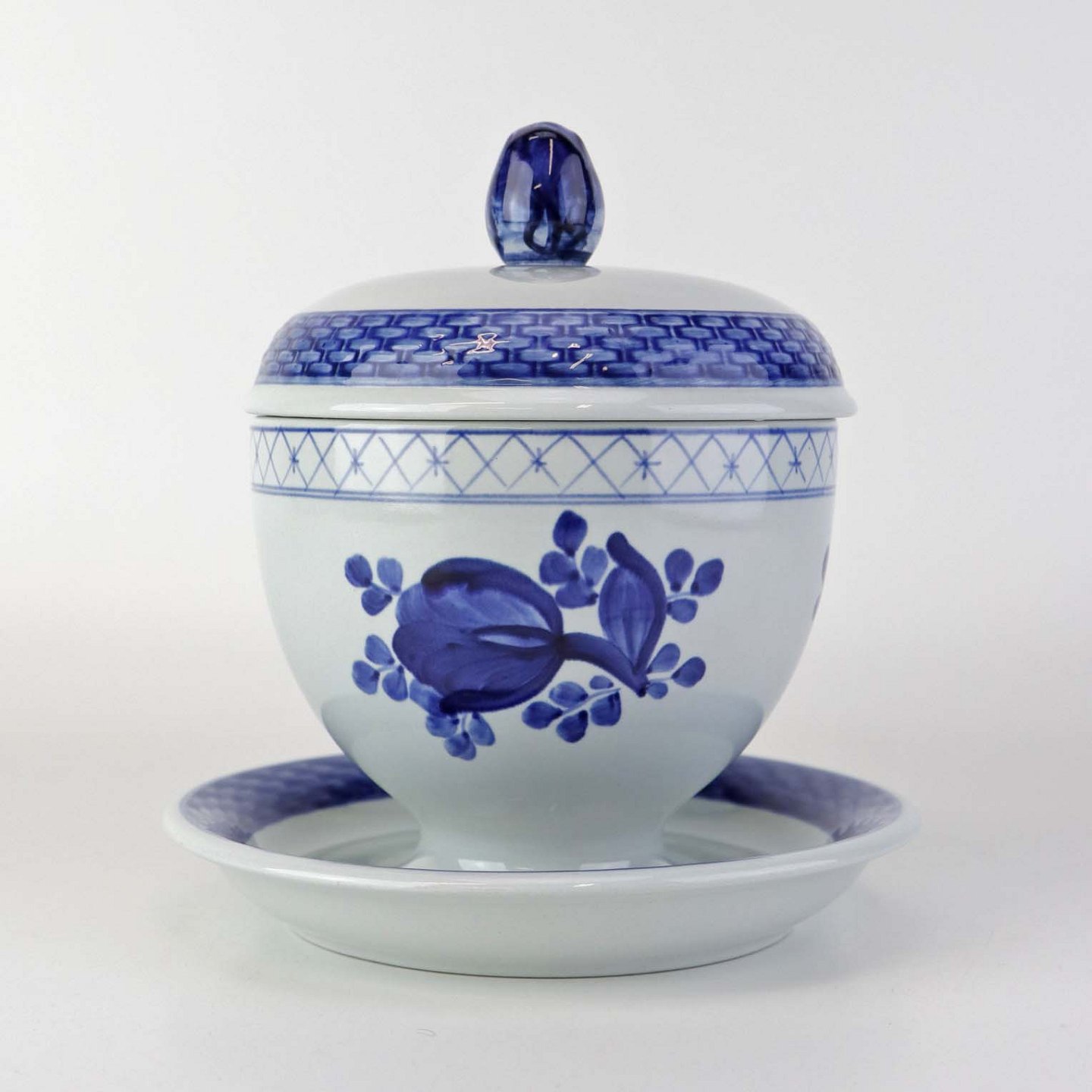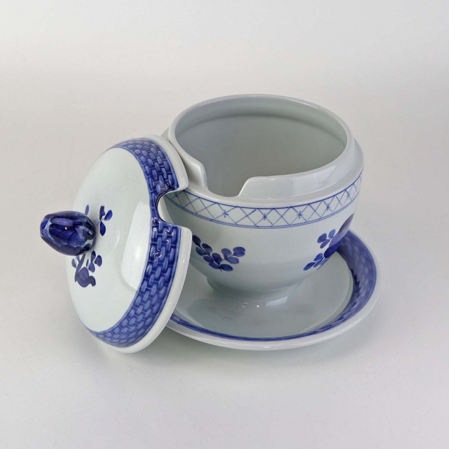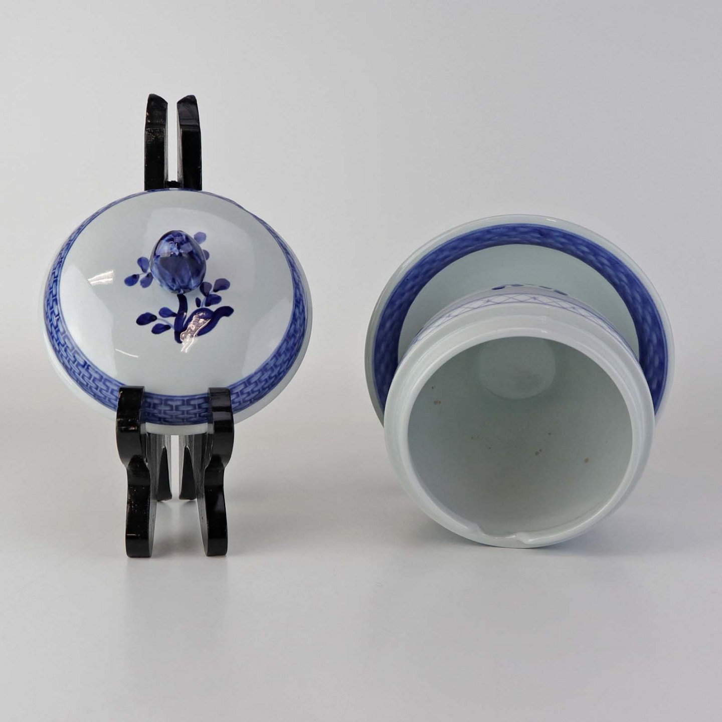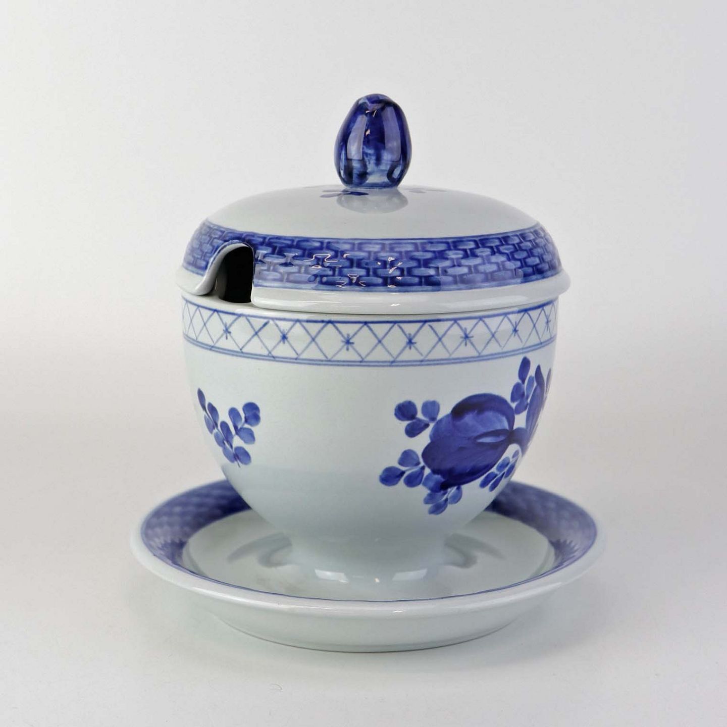 Marmeladekrukke med låg og fast bund i fajance fra stellet Blå Tranquebar. Nr. 11/1171
