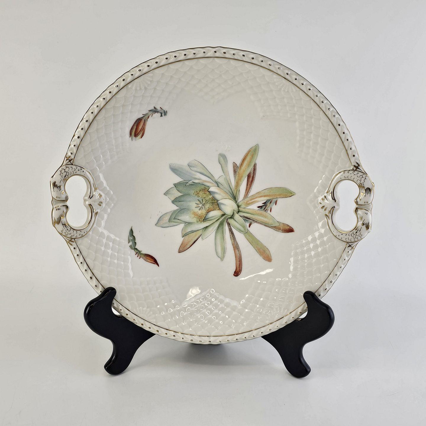 Rundt fad med hanke i porcelæn fra stellet Kaktus