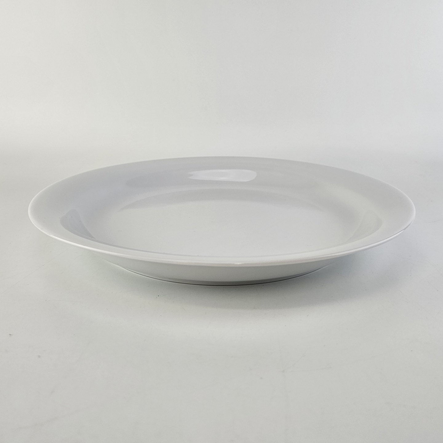 Flad middagstallerken i hvidt porcelæn fra stellet Essence