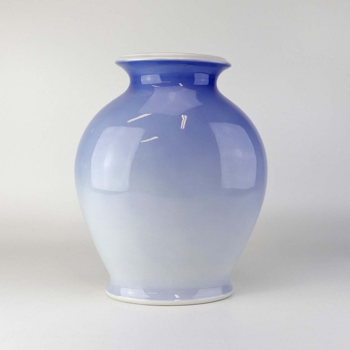 Vasen er fremstillet i forbindelse med Danfoss fabrikkernes jubilæum og er i gradueret blå farver.