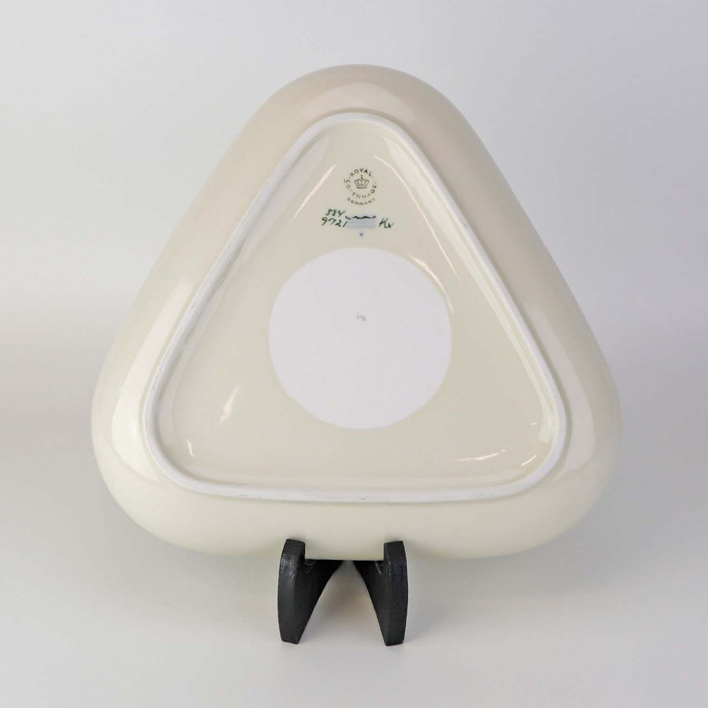 Trekantet serveringsfad i kongelig porcelæn fra stellet Hjertegræs. Nr. 884/9721