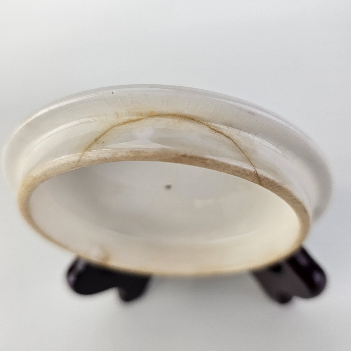 Fremstår med krakeleringer i glasuren og reparation af en overfladisk revne i låget