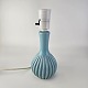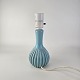 Rund bordlampe i rillet grønblå keramik med hvid fatning