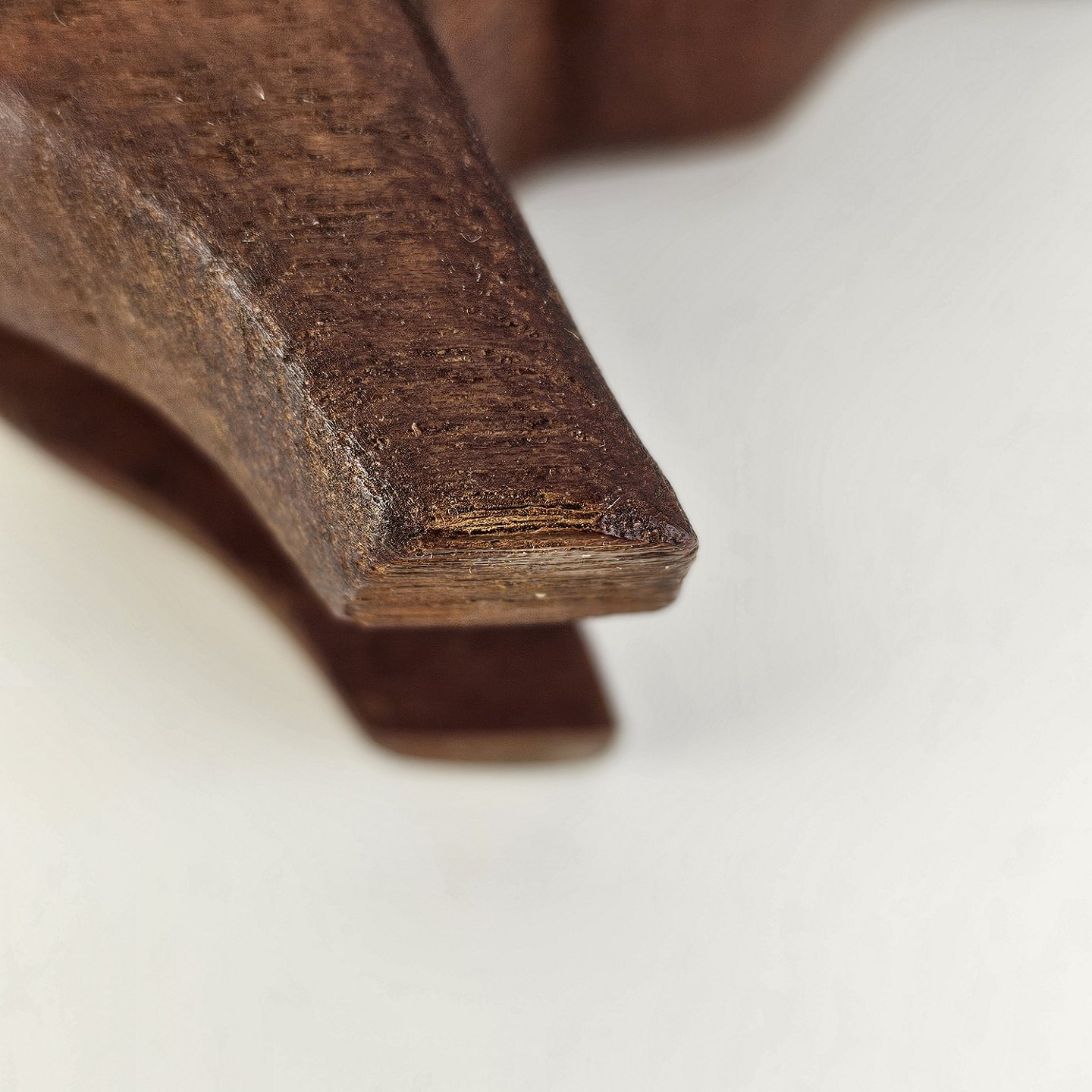 Fremstår med brugsspor i form af små hak, ridser og skrammer i overfladen, samt en streg bag et af ørerne
