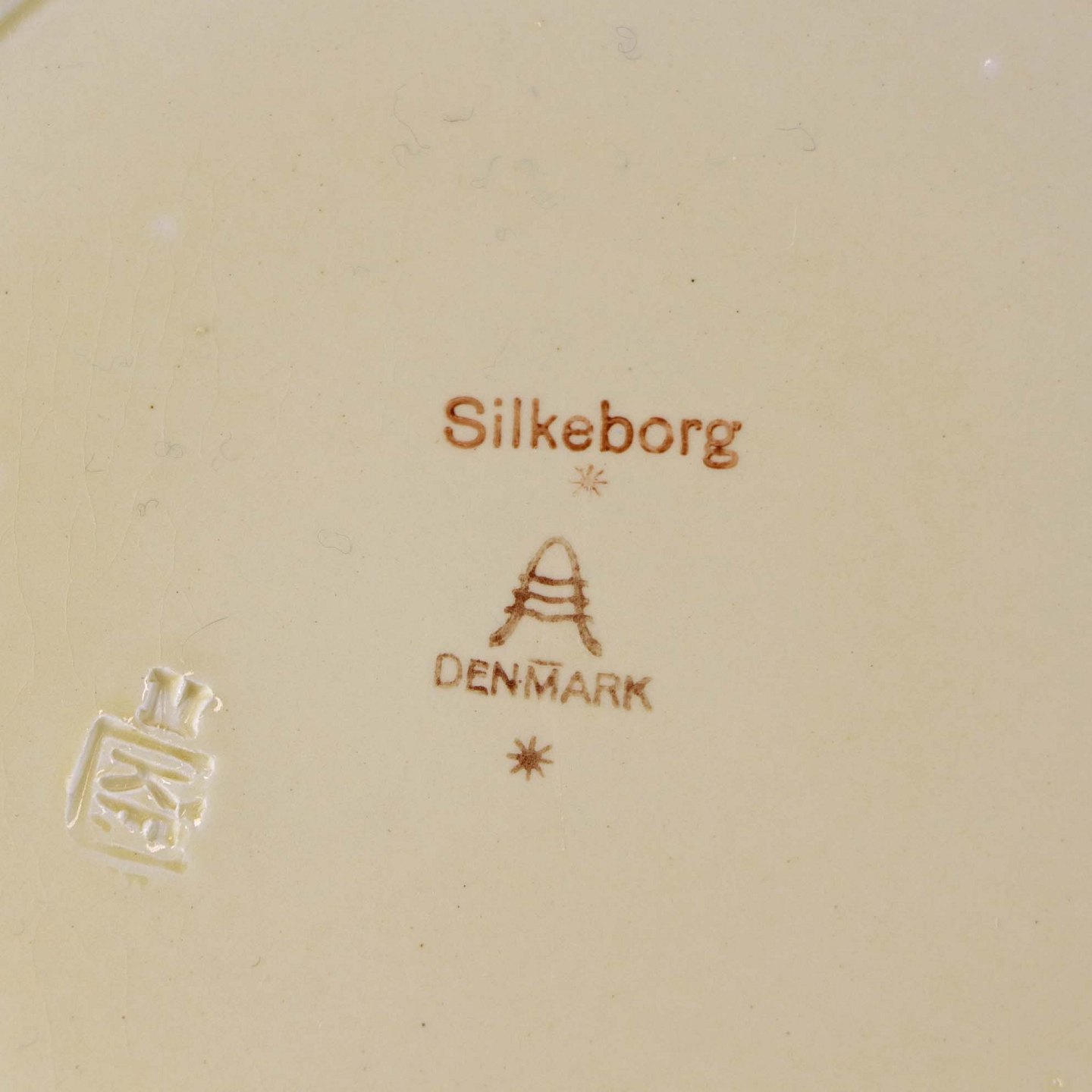 Flad middagstallerken i fajance fra stellet Silkeborg fremstillet i perioden 1937-1939