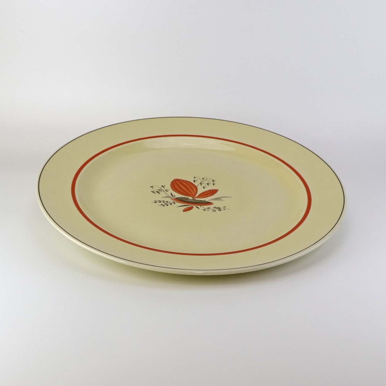 Rundt serveringsfad i fajance fra stellet Silkeborg fremstillet i perioden 1937-1939