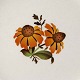 Fajancestel i stelform G med dekoration af orangegule blomster og grønne guirlander på lys baggrund med brun kant.
