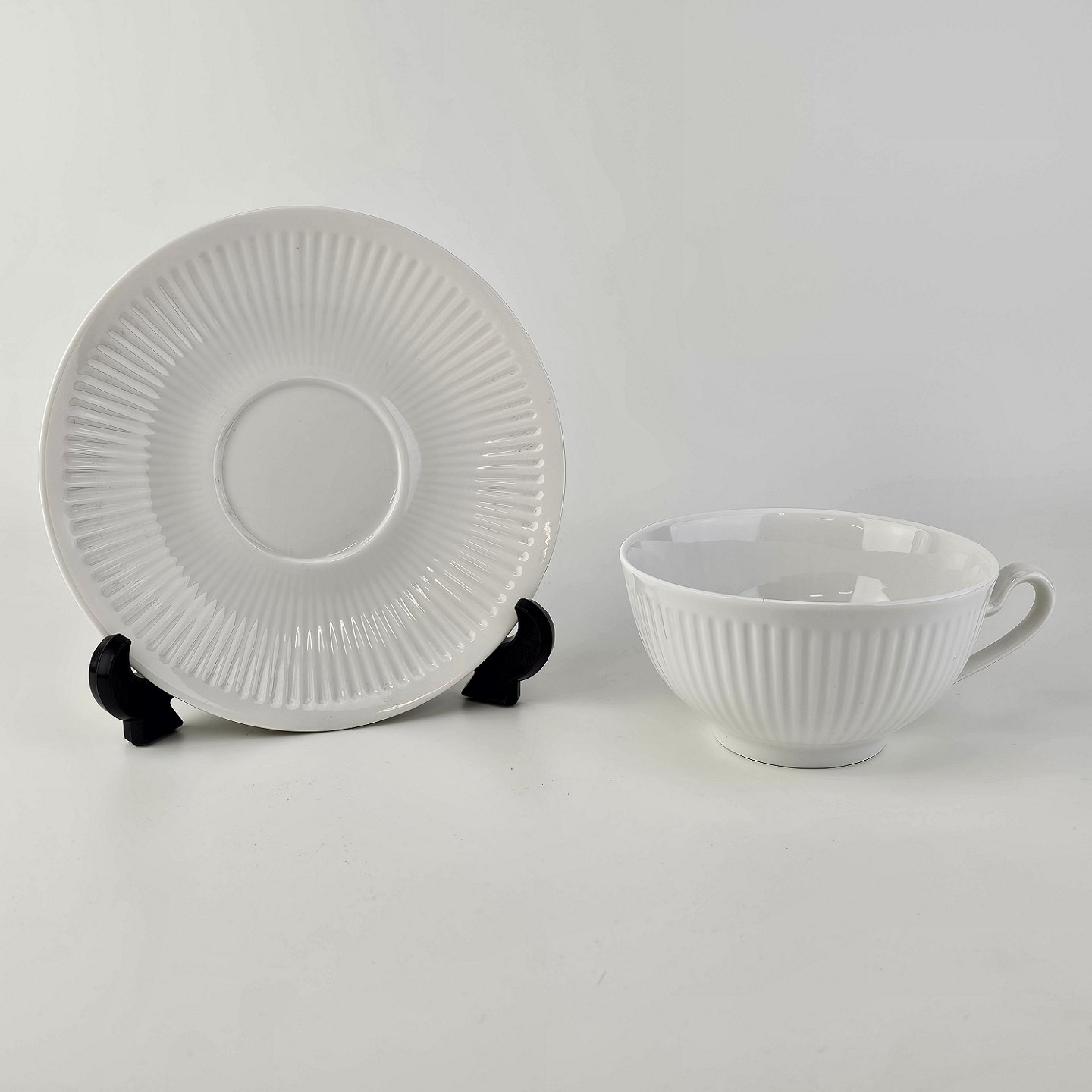 Georgiana er stel i hvidt porcelæn med riflet mønster